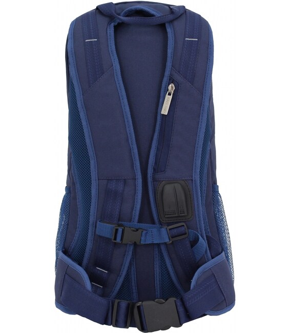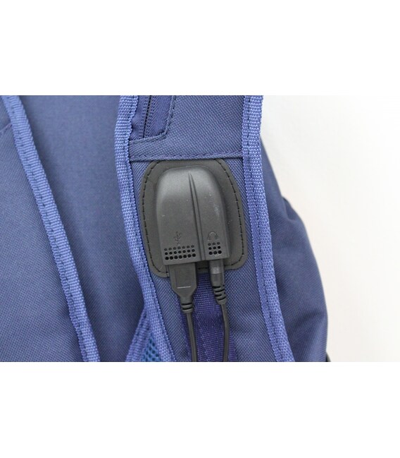 Аксесуар оснащений м’яким відділенням для ноутбука або планшета, а також органайзером для дрібниць. Спереду — два додаткові відсіки на блискавках, з боків — сітчасті кишені. Є вихід для навушників і USB-порт. Регульовані лямки та грудна стяжка забезпечують надійну фіксацію.