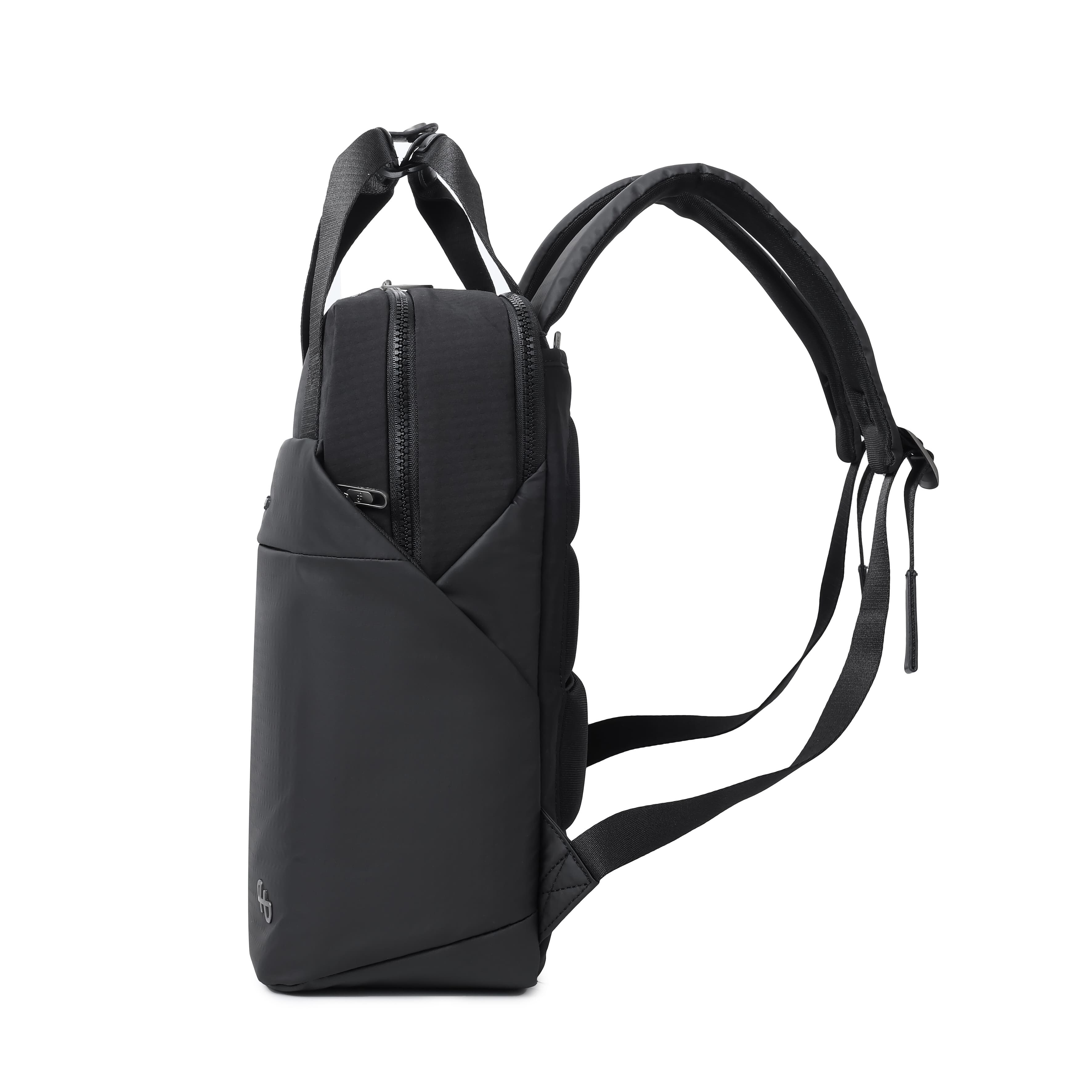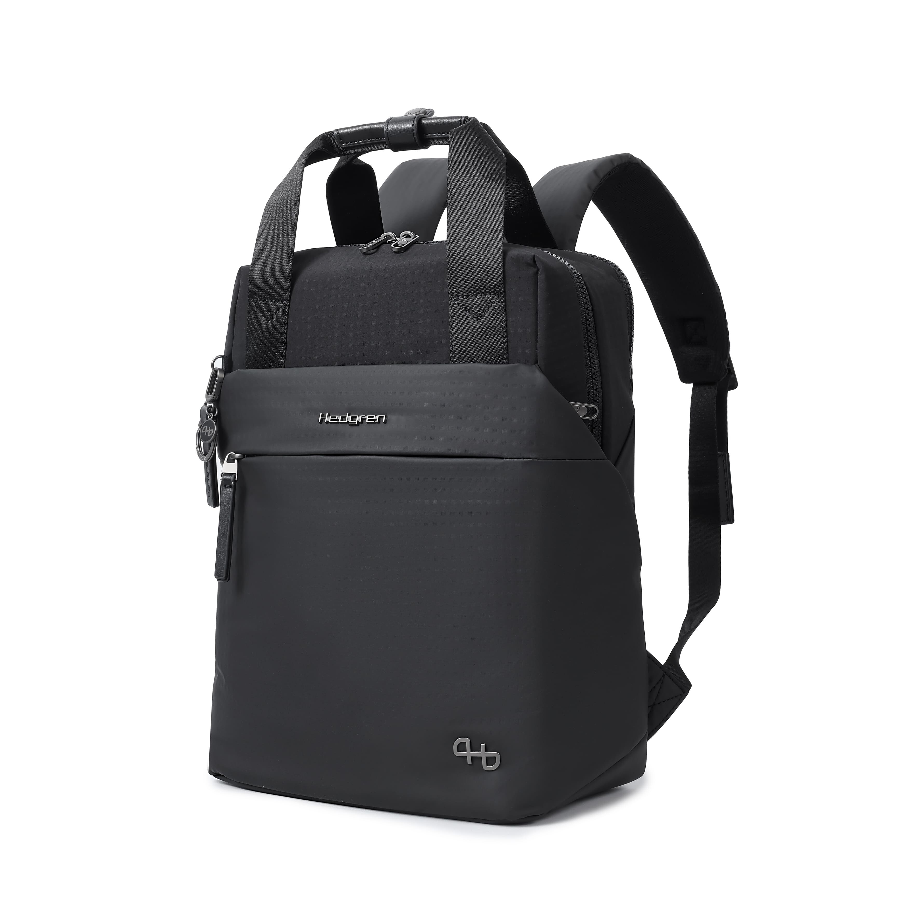 Самый большой рюкзак в ассортименте коллекции на каждый день, изготовлен из переработанной ткани в сочетании с эко-кожей. Оснащен двумя основными отделами на молнии, где можно разместить ноутбук 15.6", планшет и документы формата А4, также присутствует карман на молнии с RFID-защитой. Молния на отделе с ноутбуком, предусматривает возможность разместить навесной замок для гарантии дополнительной безопасности. карманы на передней части изделия для вещей первой необходимости.