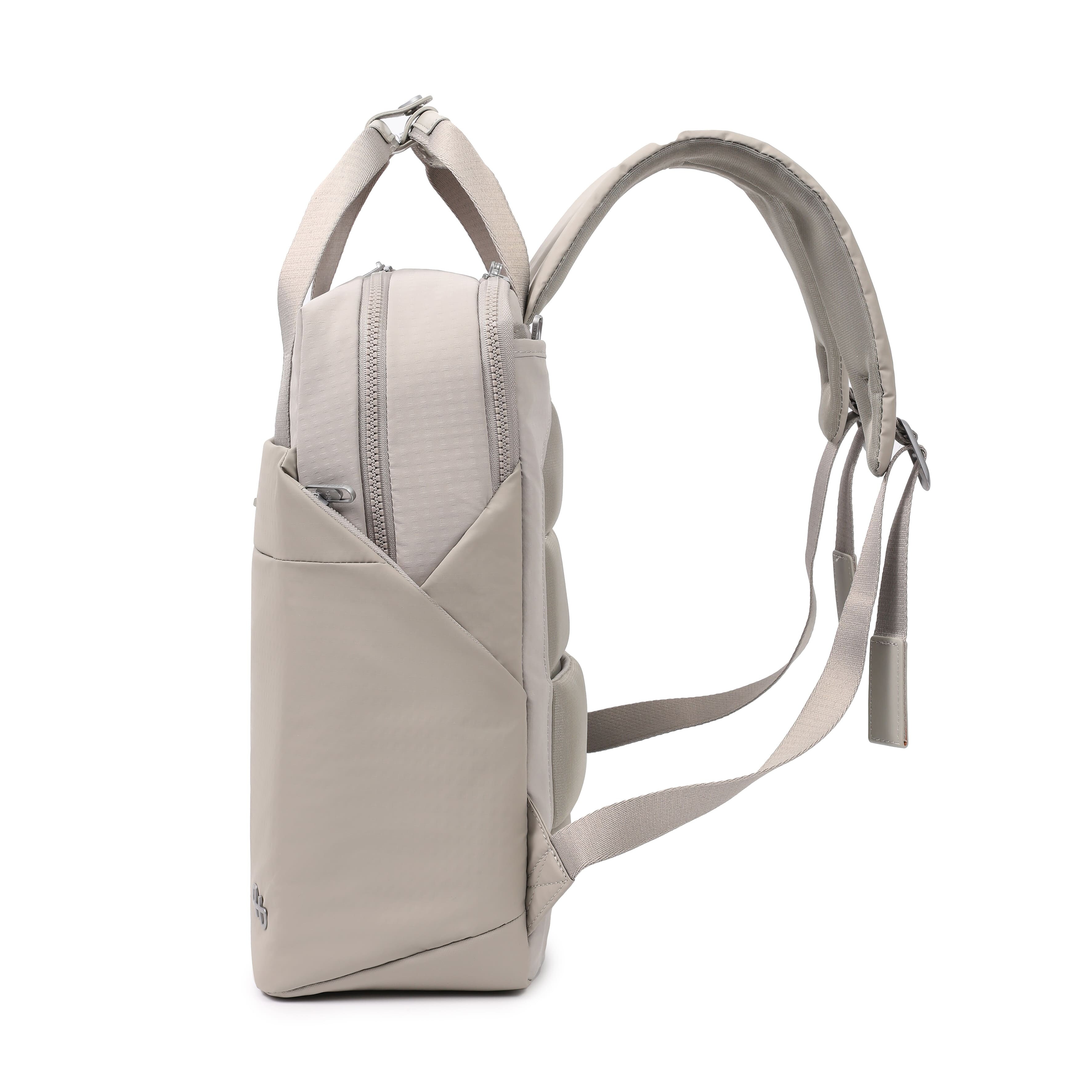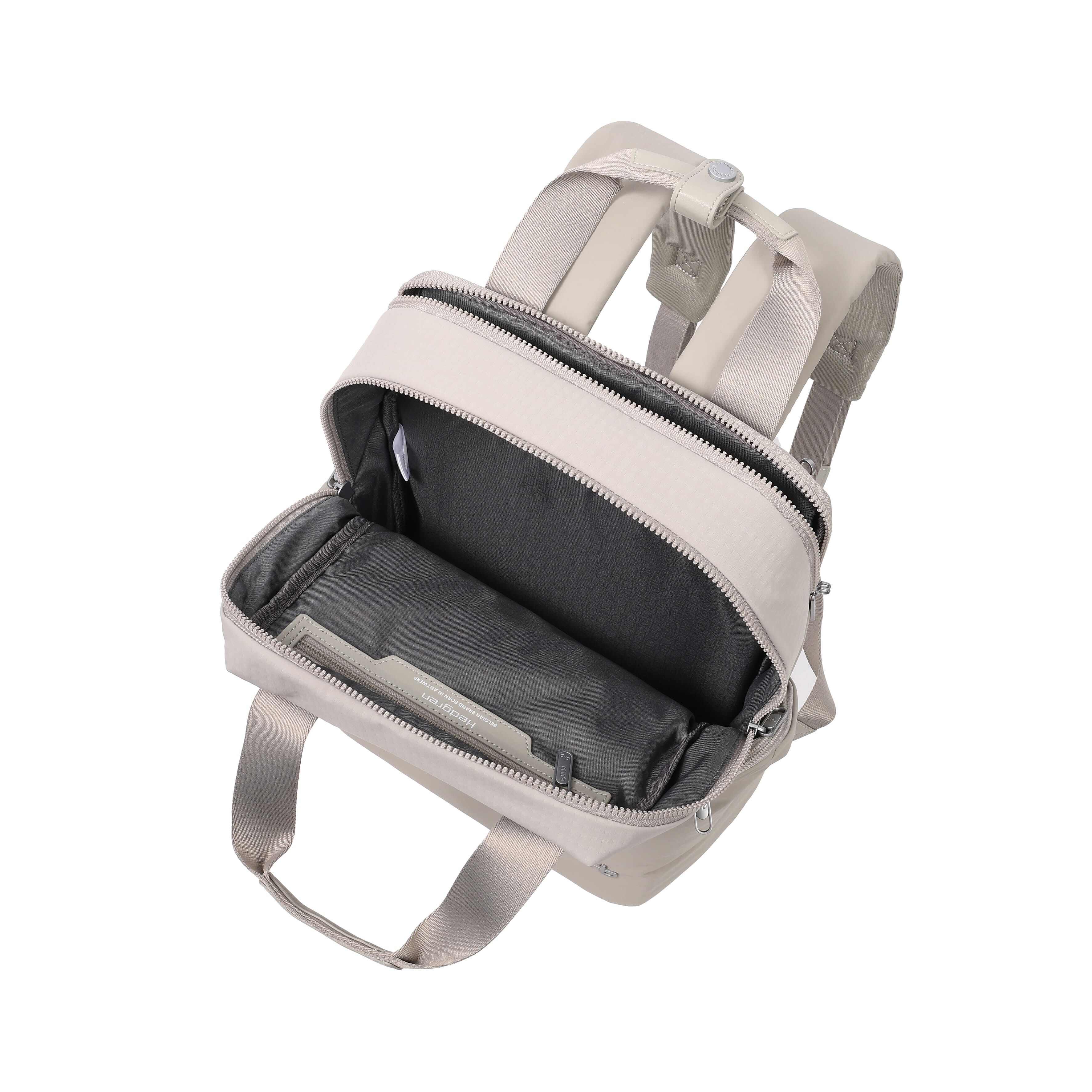 Самый большой рюкзак в ассортименте коллекции на каждый день, изготовлен из переработанной ткани в сочетании с эко-кожей. Оснащен двумя основными отделами на молнии, где можно разместить ноутбук 15.6", планшет и документы формата А4, также присутствует карман на молнии с RFID-защитой. Молния на отделе с ноутбуком, предусматривает возможность разместить навесной замок для гарантии дополнительной безопасности. карманы на передней части изделия для вещей первой необходимости.