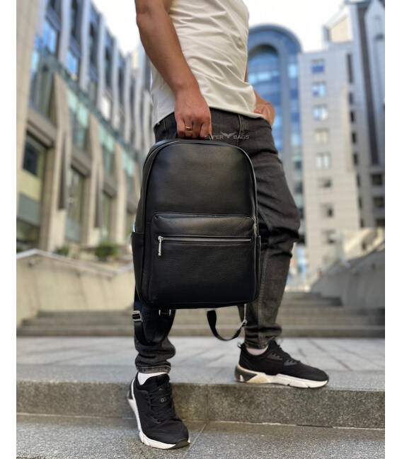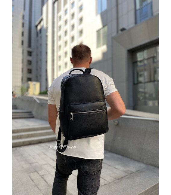 Описание Мужской рюкзак из натуральной кожи 28х39х15, наплечник для ноутбука и документов Tiding Bag 81809 черный