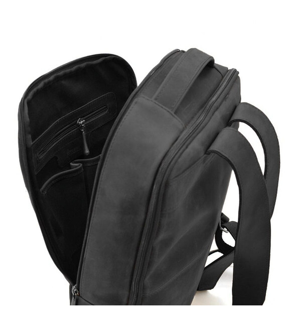 Шкіряний чоловічий чорний рюкзак TARWA RA-7287-3md – стильна та елегантна модель з класичним дизайном для тих, хто знаходиться в пошуку міського просторого рюкзака. Дуже місткий рюкзак від українського бренду TARWA. RA-7287-3md TARWA- чоловічий рюкзак, виконаний з високоякісної натуральної шкіри "Crazy Horse" з ефектом старіння. У процесі носіння такі вироби набувають унікального вінтажного вигляду. Відмінною рисою такої шкіри є матова поверхня та неоднорідне забарвлення. Колірна гама моделі обмежується класичним чорним, що робить її універсальною та легко поєднується з різними стилями одягу. Чорний відтінок підкреслює розкіш матеріалу. Доповнює виріб якісна кольорова фурнітура темного срібла. RA-7287-3md TARWA складається з містких та зручних відсіків: двох автономних відділень на блискавках, однієї кишені під ноутбук до 15 дюймів, двох кишеньок відкритого типу для смартфонів, однієї кишені на блискавці для документів та однієї вертикальної кишені на блискавці з лицьового боку. У більшому за розміром відділенні можна переносити ноутбук, документи, книги, смартфон, портмоне і т.д. Зовнішня кишеня підійде для речей, до яких потрібний швидкий доступ, наприклад ключі, візитки, перепустка. Усередині рюкзак обшитий м'яким текстилем.
