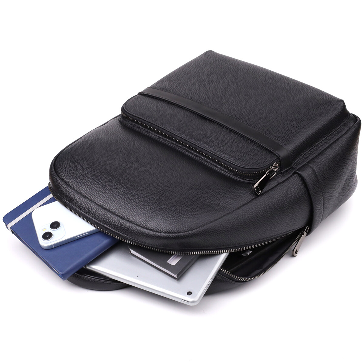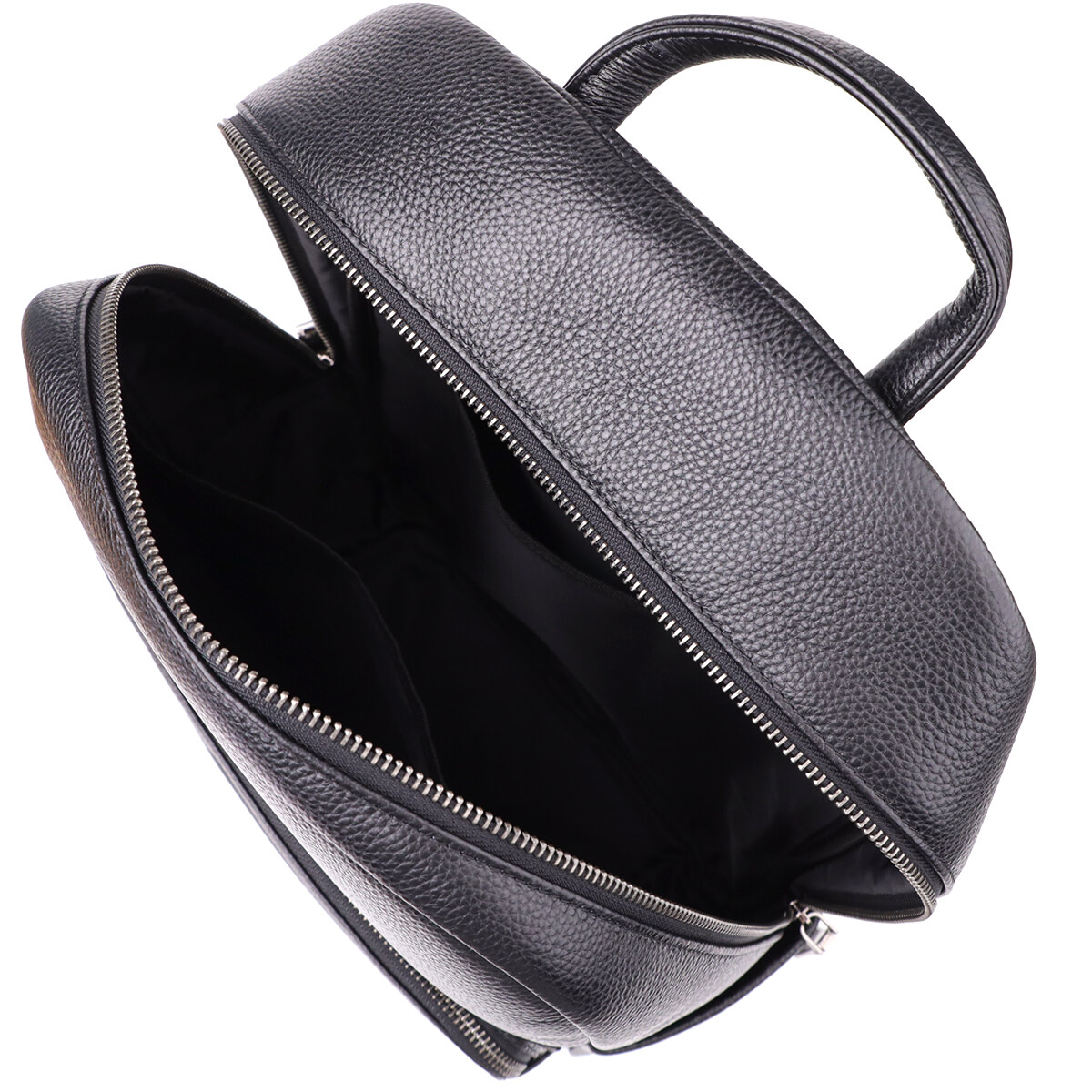Мужской кожаный рюкзак выполнен из натуральной кожи с выразительной текстурой и оснащён одним основным отделением на молнии с двумя бегунками, обеспечивающим удобный доступ и вместительность. Внутри находятся два открытых кармана для удобной организации мелких вещей. На лицевой стороне расположен накладной карман на молнии, который подходит для быстрого доступа к необходимым предметам. Для комфортной переноски предусмотрена кожаная ручка, мягкие регулируемые лямки и ортопедическая спинка, которая снижает нагрузку на позвоночник при длительном ношении. Фурнитура выполнена в цвете тёмного серебра, подчёркивая стиль и элегантность модели. Этот рюкзак станет надёжным и удобным спутником в повседневной жизни.