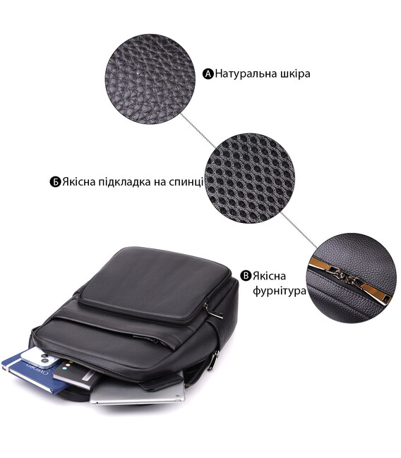 Описание Мужской рюкзак из натуральной кожи Vintage 23052 Черный
