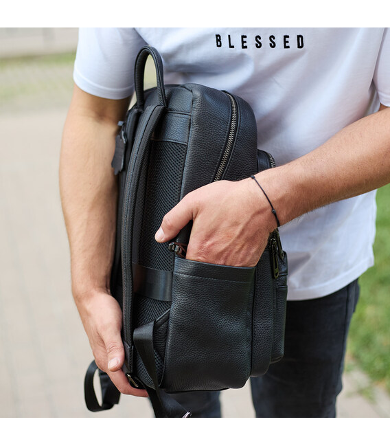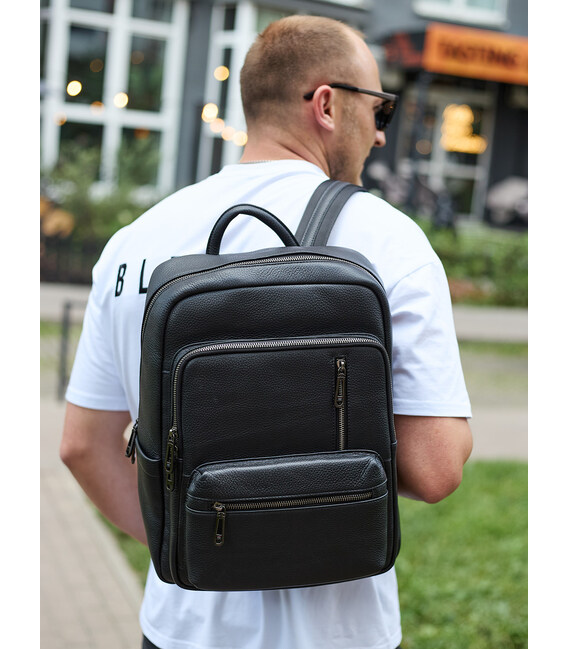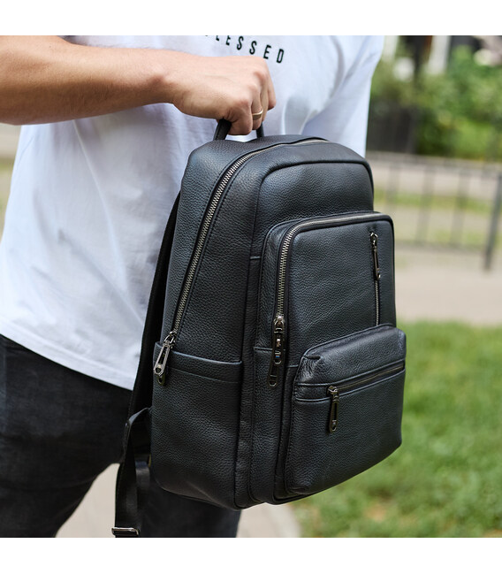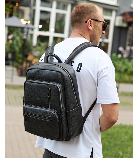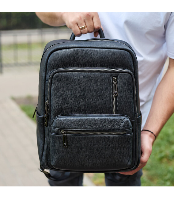 Описание Городской мужской рюкзак из натуральной кожи 40х30х18, рюкзак для работы и путешествий, черный