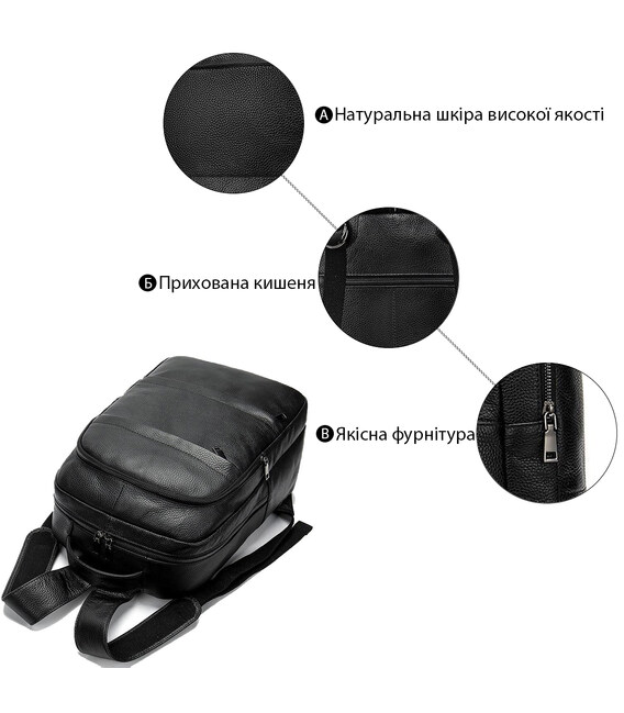 Описание Кожаный рюкзак для ноутбука города и повседневного использования Vintage 14696 Черный