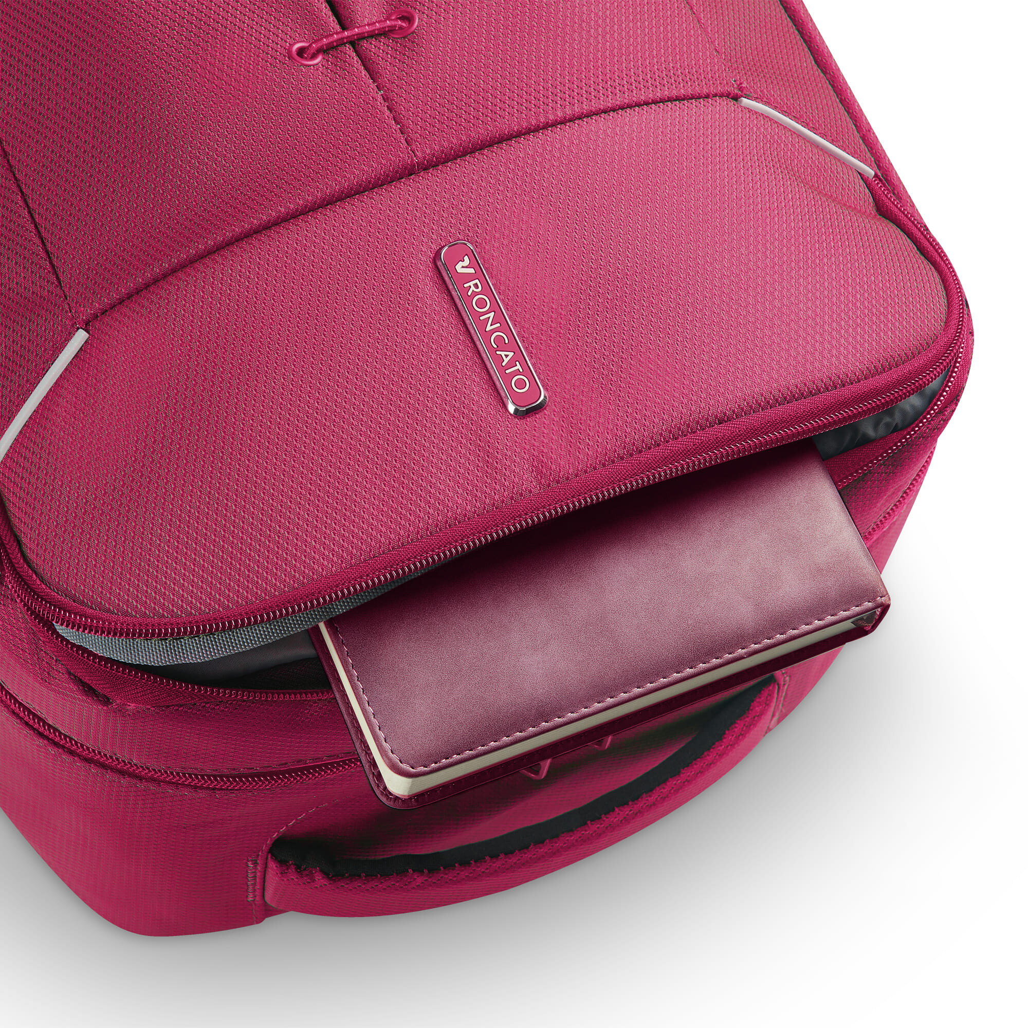 Рюкзак для путешествий – уникальная возможность соединить личные вещи с современными гаджетами. Идеальный вариант для командировок, в которых Вам понадобятся, предметы первой необходимости и место для одежды. Наружная ткань изготовлена из нейлона и полиэстера для обеспечения долговечности и легкости, а внутренняя подложка изготовлена из 100% переработанного RPet. Оснащен вместительным основным отделением и наружными карманами. Также, для удобства перемещения на задней части расположены мягкие плечевые ремни, боковая ручка для горизонтальной переноски и тканевая крепежная планка на телескопической ручке чемодана.
