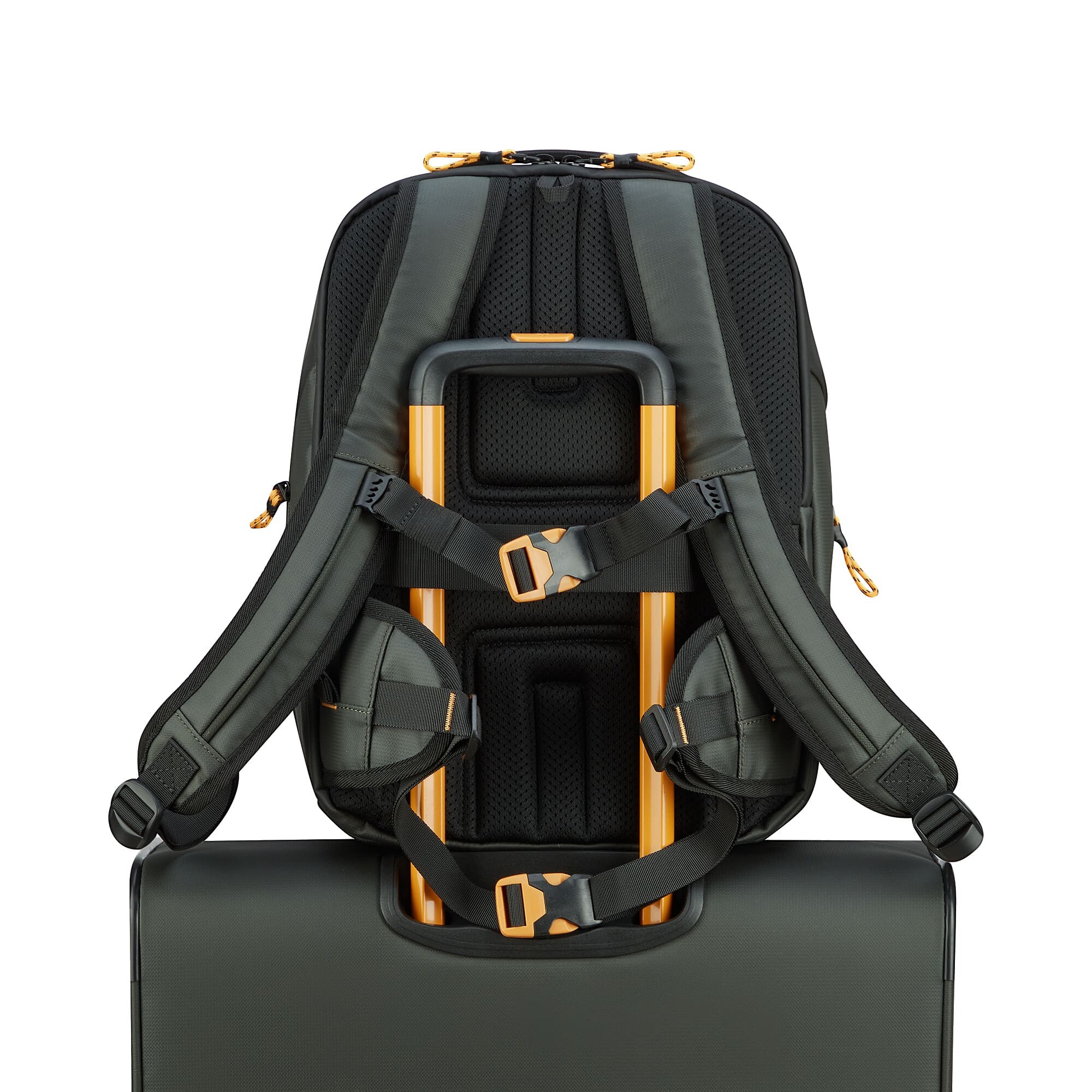 Рюкзак для путешествий – уникальная возможность соединить личные вещи с современными гаджетами. Идеальный вариант для командировок, в которых Вам понадобятся техника, предметы первой необходимости и место для одежды. Изделия коллекции изготовлены из волнистого полиэстера 900D с PU-покоем, которое защищает от дождя, брызг, влаги и быстро сохнет. Изделие оснащено двумя основными отделами, с карманом для мелких предметов с сетчатой ​​перегородкой для организации и разделения одежды. Второй отдел предназначен для ноутбука 14", планшета и документов. Также, предусмотрен боковой карман для бутылки/зонта. Для удобства перемещения на задней части размещены мягкие плечевые ремни, планка для фиксации на телескопической системе чемодана, возможность застегнуть плечевые ремни фиксатором на грудь.