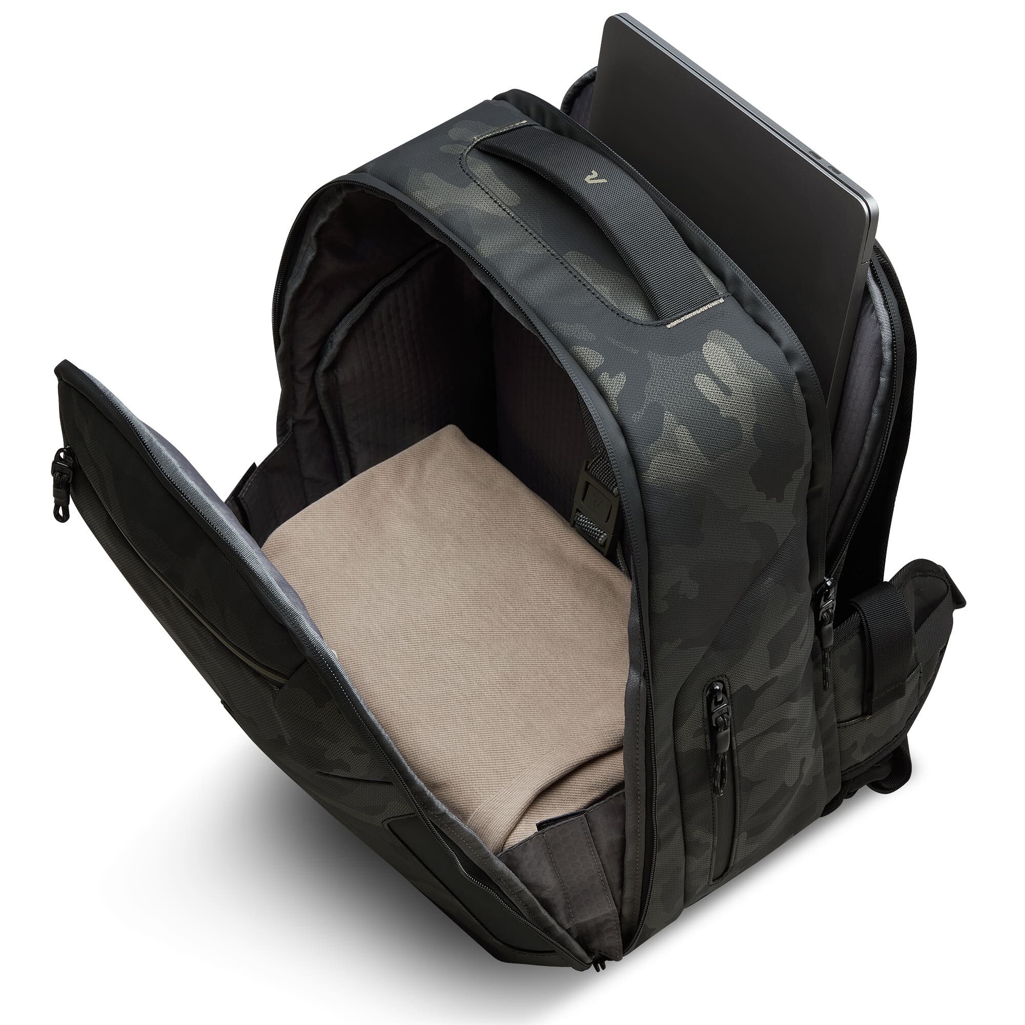 Рюкзак для путешествий – уникальная возможность соединить личные вещи с современными гаджетами. Идеальный вариант для командировок, в которых Вам понадобятся техника, предметы первой необходимости и место для одежды. Изделия коллекции изготовлены из волнистого полиэстера 900D с PU-покоем, которое защищает от дождя, брызг, влаги и быстро сохнет. Изделие оснащено двумя основными отделами, с карманом для мелких предметов с сетчатой перегородкой для организации и разделения одежды. Второй отдел предназначен для ноутбука 14", планшета и документов. Также, предусмотрен боковой карман для бутылки/зонта. Для удобства перемещения на задней части размещены мягкие плечевые ремни, планка для фиксации на телескопической системе чемодана, возможность застегнуть плечевые ремни фиксатором на грудь.