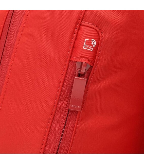 Аксессуар оснащен плечевыми ремнями с возможностью регулировать длину. Также на задней поверхности расположен скрытый карман на молнии с RFID защитой.