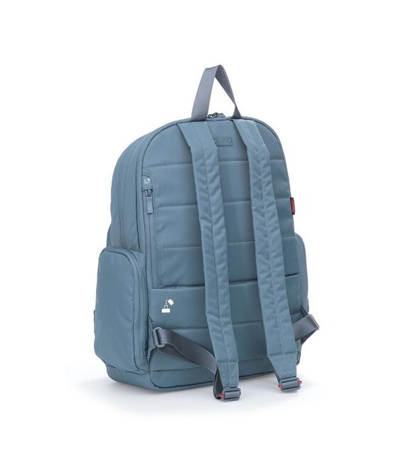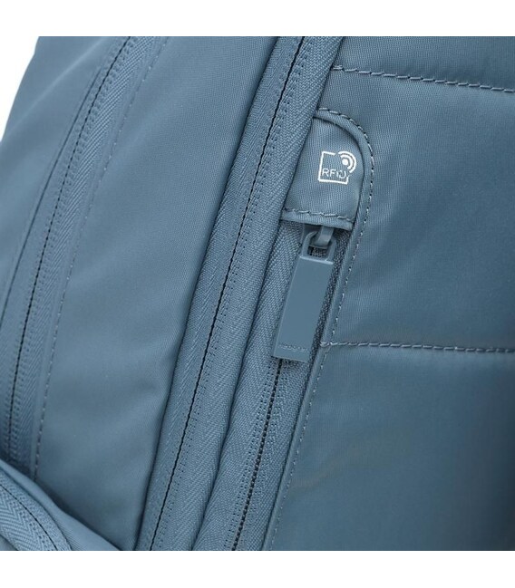 Городской рюкзак оснащен специальным местом для ноутбука 15" и планшета. На фронтальной поверхности расположен объемный карман на молнии с мини-офисом внутри, на нем еще один карман на молнии. На боковых поверхностях предусмотрены карманы на молнии со сдерживающими углами.