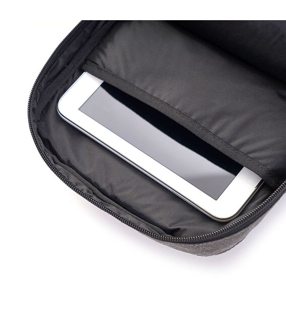 Основное отделение закрывается на молнию и оснащено дополнительным карманом, предусмотренным для планшета.