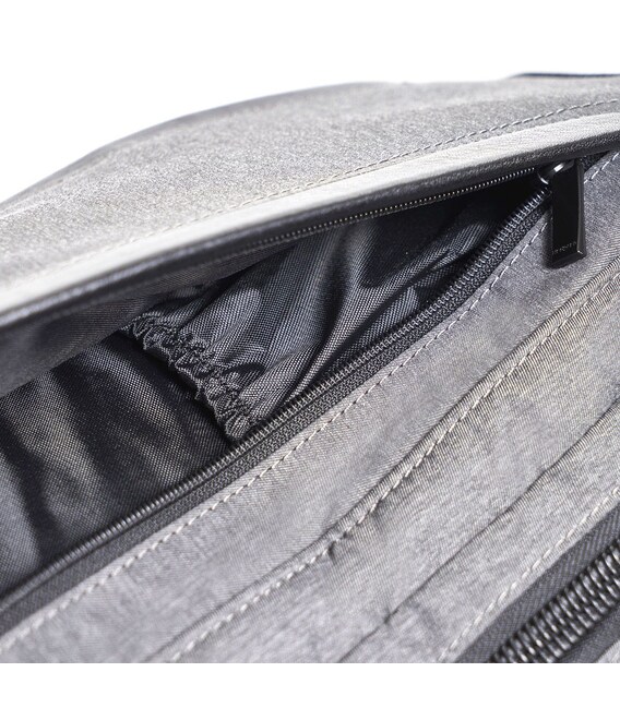 У рюкзака есть два больших отделения на молнии. На фасадной части расположен глубокий карман на молнии с мини-офисом внутри, карманом на молнии и тремя дополнительными вертикальными карманами. Также на боковой поверхности есть небольшой карман для необходимых мелочей.