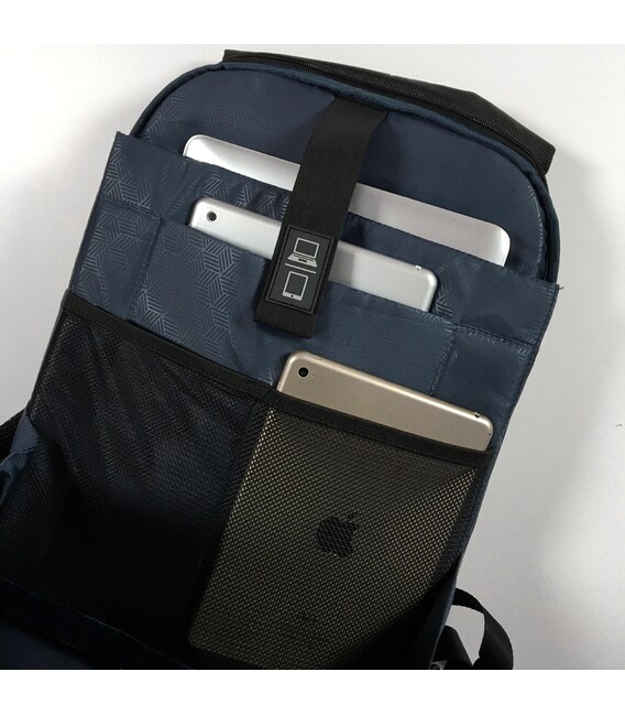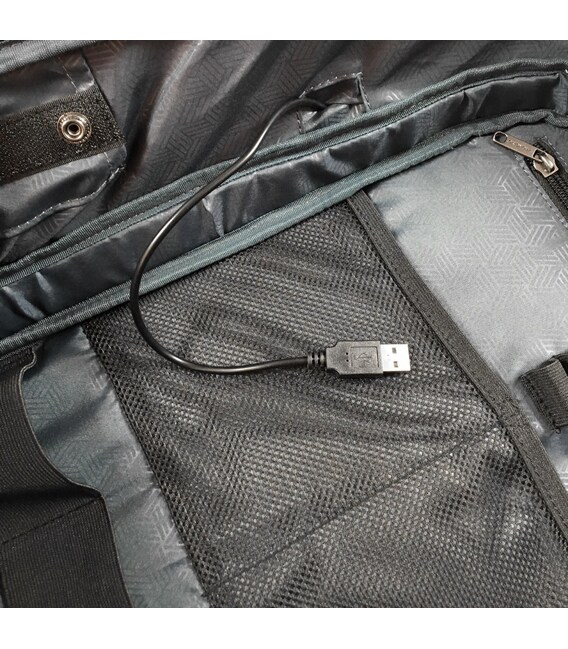| Особливості товару | Бокове відділення для навушників, вбудований USB-кабель для електронних пристроїв, відділення для ноутбука і планшета, кишеня для квитків, проїзних на плечовому ремені рюкзака |