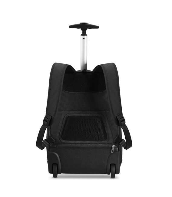 Рюкзак на колесах-уникальная возможность совместить личные вещи с современными гаджеты. Идеальный вариант для командировок в которых Вам понадобятся, на борт самолета, ноутбук до 15" и планшет до 10" и место для вещей. Выполнен из комбинированного полиэстера плотностью 450*450D и 300*300D, благодаря чему держит форму. Оснащен вместительным основным отделением и наружными карманами. Для удобства перемещения на задней части размещены мягкие плечевые ремни с ортопедической спинкой.