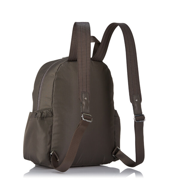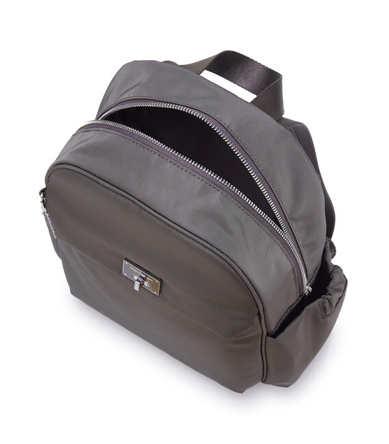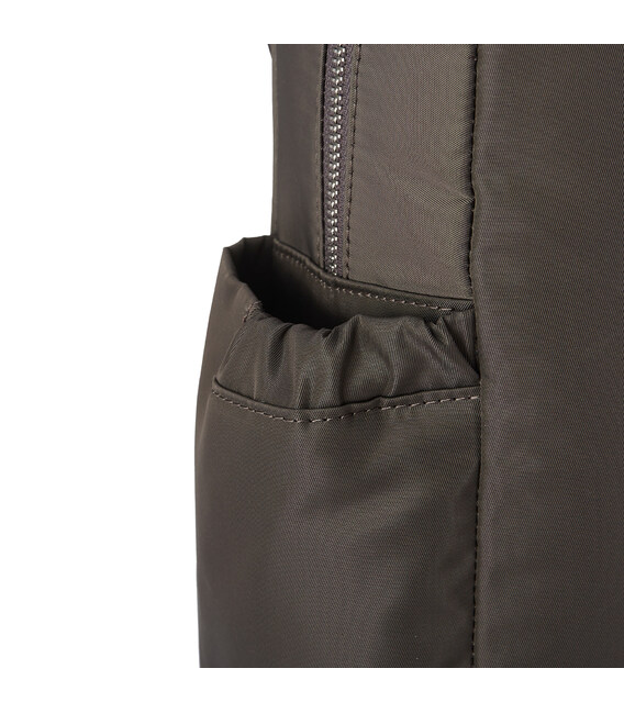 Женский, городской рюкзак, среднего размера. Оснащен наружным карманом на клапане с карабином для ключей, вместительным основным отделением на молнии где размещен отдел для телефона и дополнительный карман на молнии с RFID-защитой. Также содержит боковые карманы для зонта или бутылки. Выполнен из 100% переработанного полиэстера PET (полиэфирная ткань из переработанных пластиковых бутылок).
