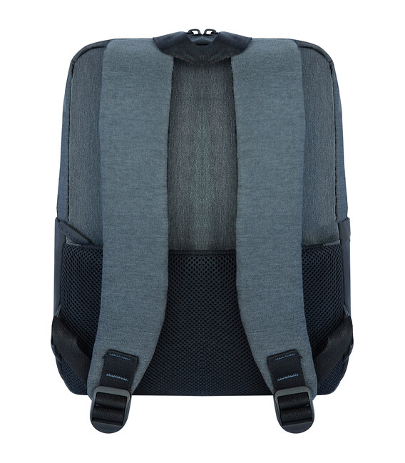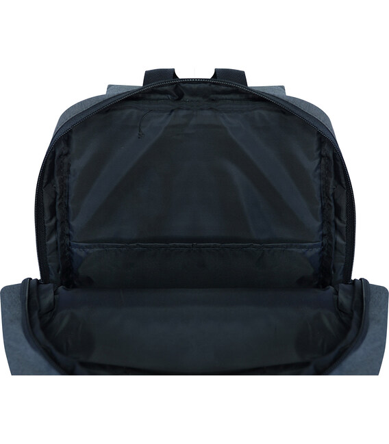 Усередині є окреме відділення для ноутбука або планшета. Спереду — кишеня на блискавці для гаманця, телефону або документів, а на спинці — додатковий відсік. Конструкція рюкзака напівжорстка, тож він тримає форму навіть у порожньому стані.
