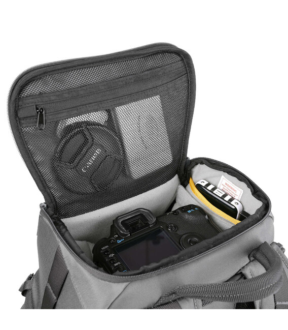 - Модульная система. Съемные внутренние мягкие разделители разделяют внутреннее пространство рюкзака на восемь отделений и фиксируют камеру и аксессуары внутри рюкзака;