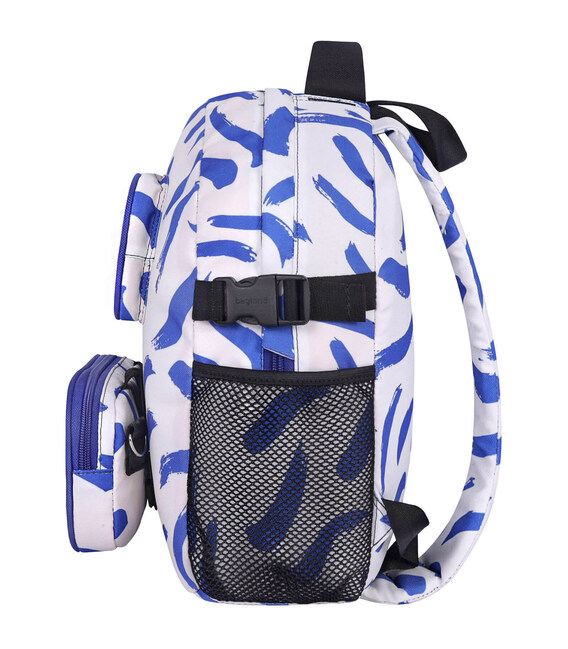 Ззовні з обох боків є відсіки для пляшки з водою чи термочашки, а спереду — кишеня для дрібниць та бананка, яка кріпиться до рюкзака за допомогою липучки.