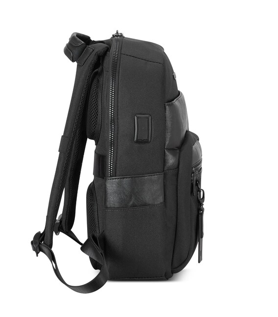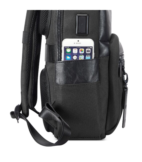 Изделие изготовлено из эко-кожи и плотного баллистического нейлона, с акцентом на функциональность. Оснащений основным отделом на молнии, в котором есть возможность разместить ноутбук, планшет, смартфон, пишущие предметы и нужные Вам вещи. С внешней стороны рюкзака расположены небольшие карманы для речей первой необходимости и украшены съемным кольцом для ключей, которое также можно использовать отдельно от рюкзака. Задняя часть изделия оснащена маленькой карманом на молнии, ортопедической спинкой и мягкими плечевыми ремнями. Для удобства переноски оборудования противоскользящей ручкой.
