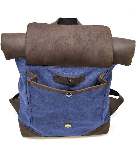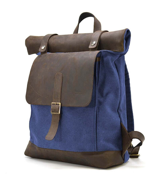 Описание Рол-ап рюкзак зі шкіри та синій канвас TARWA RKc-5191-3md