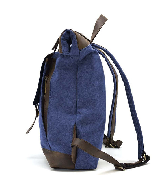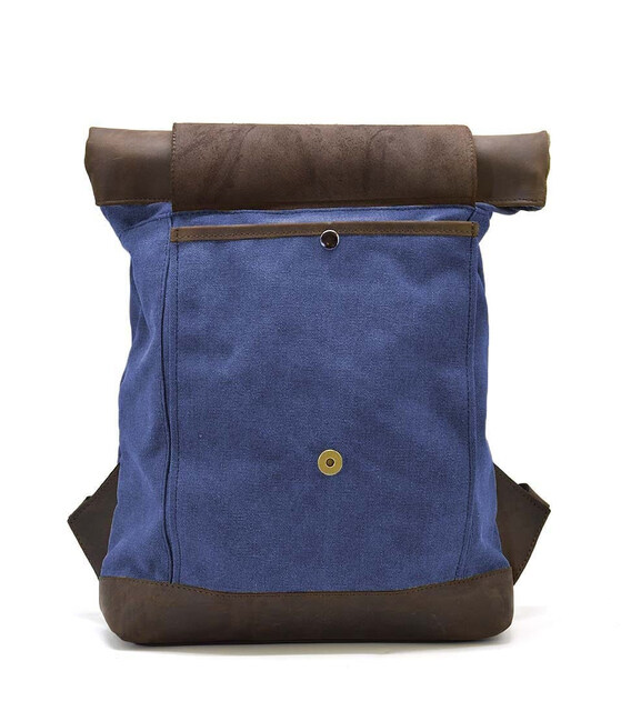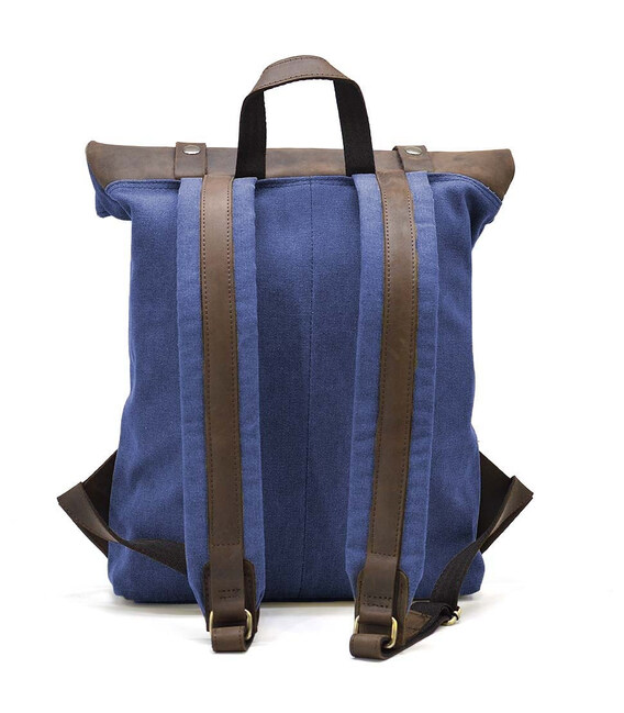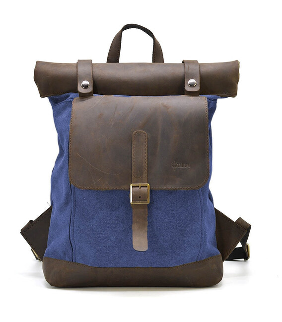 Рол-ап рюкзак зі шкіри та синій канвас TARWA RKc-5191-3md