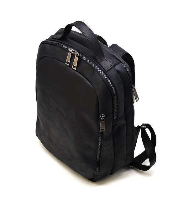 Міський чорний рюкзак RA-3072-3md TARWA шкіра Crazy Horse на два відділення з передньою кишенею. Шкіряні шлейки. Шкіряна ручка. Металева блискавка.