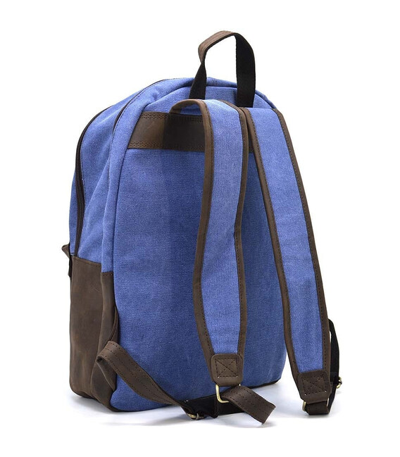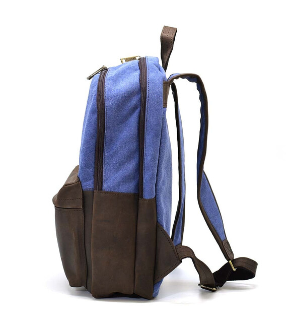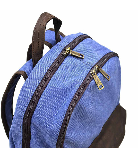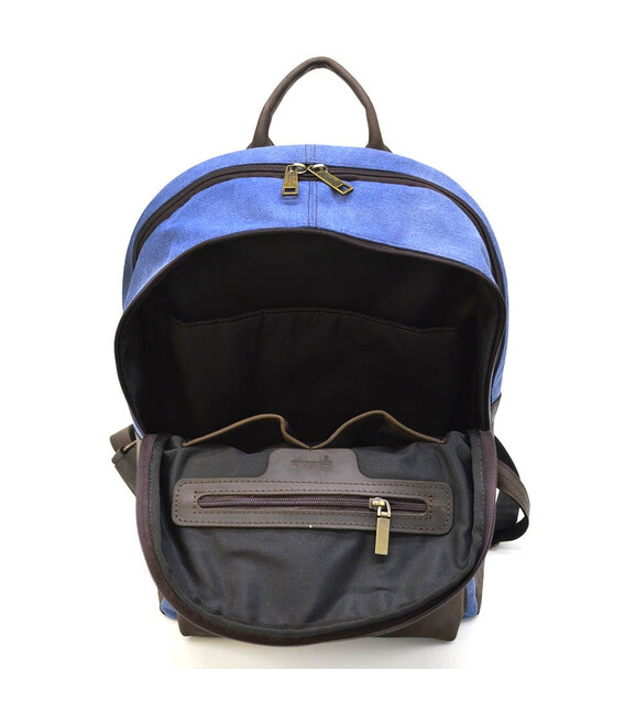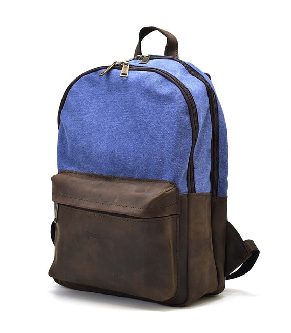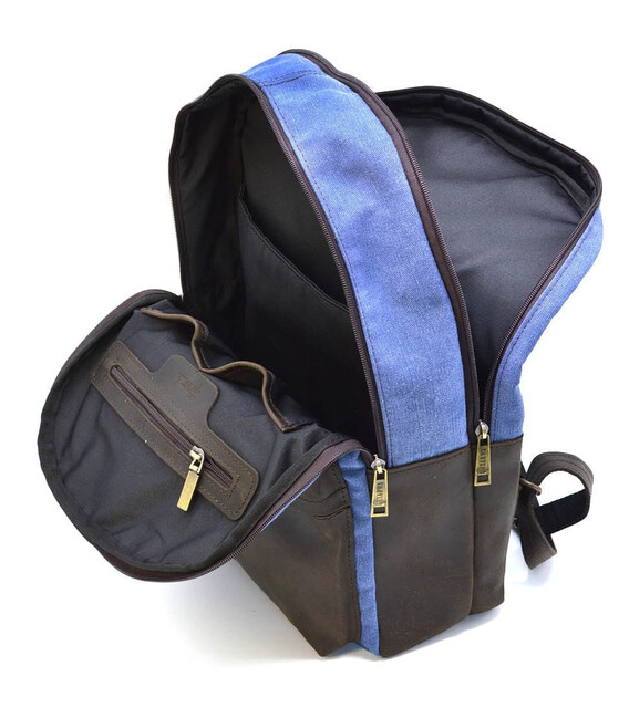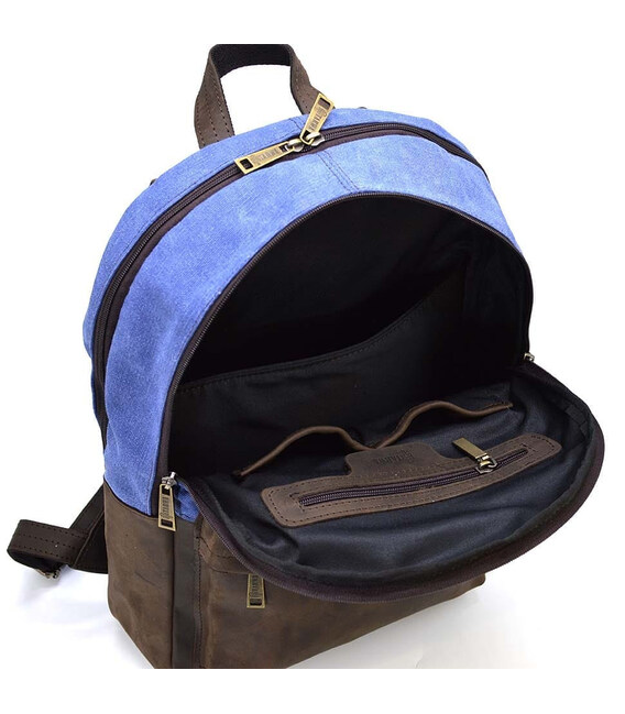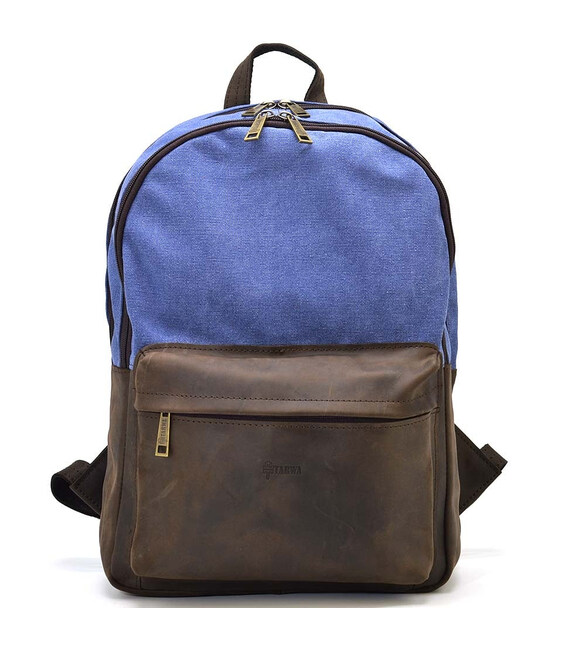 Чоловічий рюкзак шкіра та канвас для ноутбука TARWA RKc-7273-3md на два відділення з вінтажної шкіри крейзі хорс. Два ізольованих відділення на блискавці (блискавка кольору темний нікель). Шкіряні шлейки, передня кишеня, боковини. Розміри: 40×31×13