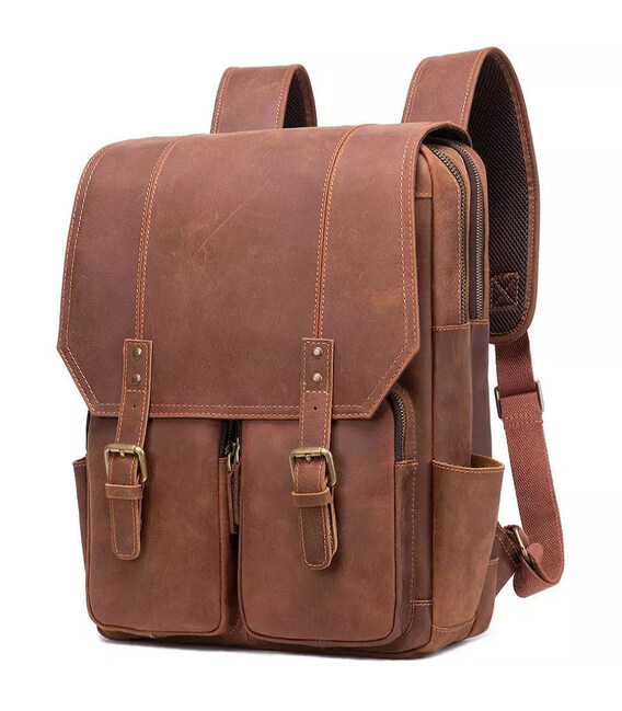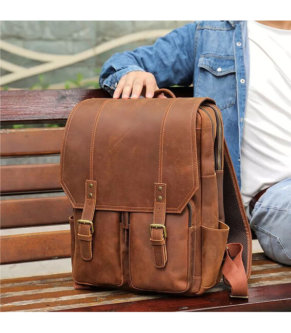 Шкіряний рюкзак для ноутбука Bexhill bx1124. Розміри 35*45*16див. Дві великі повнорозмірні відділення, три передні накладні кишені, дві бічні відкриті кишені. Шкіряні шлейки з регулюванням по довжині.