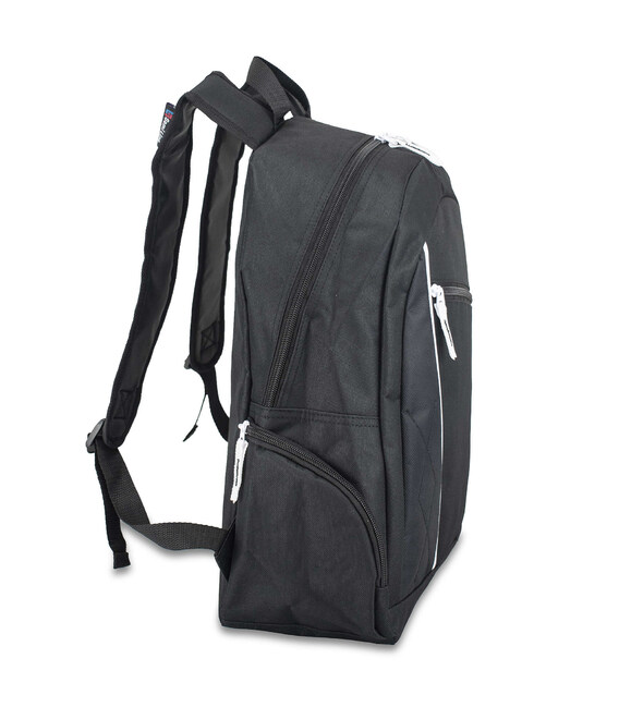 Легкий и вместительный рюкзак Semi Line 19 Black оборудован вставками ткани с бликом на фронтальной стороне, что сделает вас более заметными в темное время суток, а яркие элементы белого цвета придают ему спортивный стиль. Боковой сетчатый карман с эластичной лентой будет надежно удерживать бутылку с водой или любую другую вещь от выпадения, а во внешних карманах на молнии можно разместить вещи первой необходимости. Выполнен рюкзак из прочной, водостойкой ткани 600D Polyester PVC и имеет удобные эргономичные шлейки, регулируемые по длине. Он лучше всего подойдет для повседневного использования, занятий спортом или прогулок по городу.