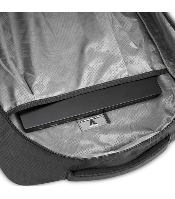 Рюкзак для путешествий – уникальная возможность соединить личные вещи с современными гаджетами. Идеальный вариант для командировок в которых Вам понадобятся, на борт самолета, ноутбук 15,6" и место для вещей. Наружная ткань изготовлена из нейлона и полиэстера для обеспечения долговечности и легкости, а внутренняя подложка изготовлена из 100% переделанного RPet. Оснащен вместительным основным отделением и внешними карманами для предметов, которые нужны под рукой, а также для удобства перемещения на задней части расположены мягкие плечевые ремни, боковая ручка для горизонтальной переноски и тканевая крепежная планка на телескопической ручке чемодана.