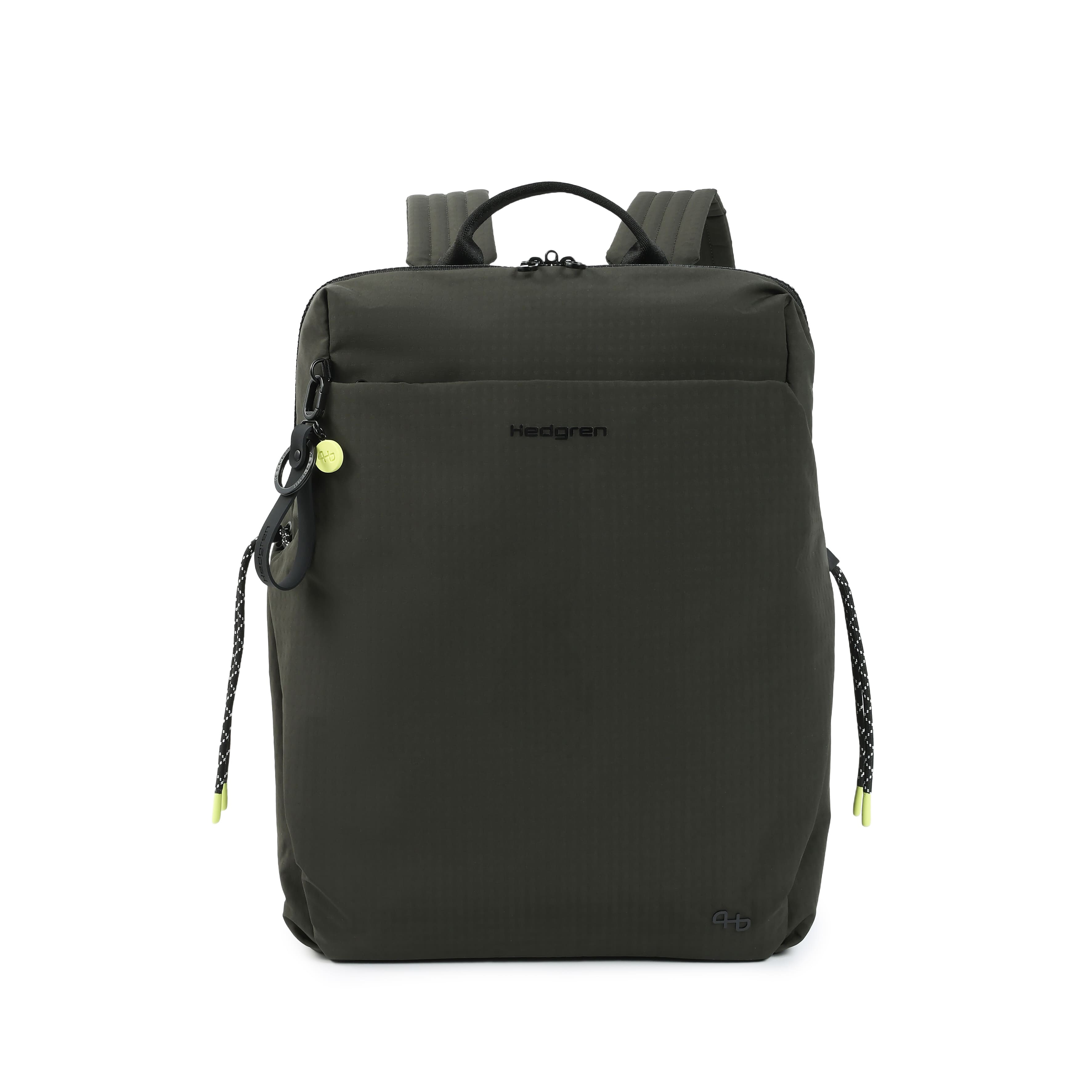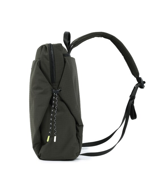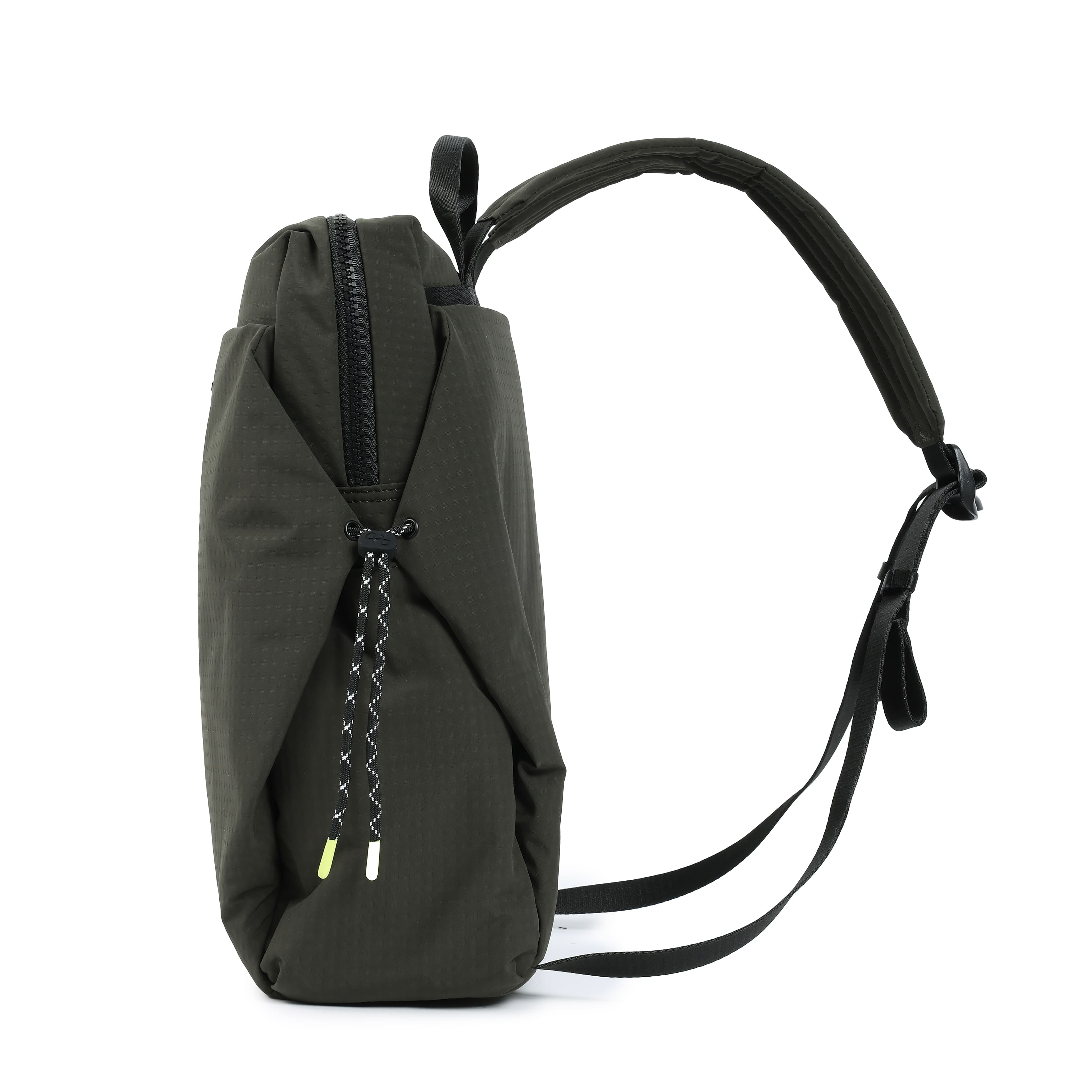 Универсальный рюкзак, изготовленный из переработанной ткани. Оснащен основным отделением на молнии с отделом для ноутбука 14", документов формата А4 и дополнительным карманом на молнии. Снаружи оснащен карманом, для предметов первой необходимости. На задней части изделия присутствует разумный рукав для крепления на телескопическую ручку чемодана, который при необходимости может превратиться карман, благодаря молнии. Также, по необходимости, рюкзак расширяется и имеет боковые карманы для бутылки/зонтики.