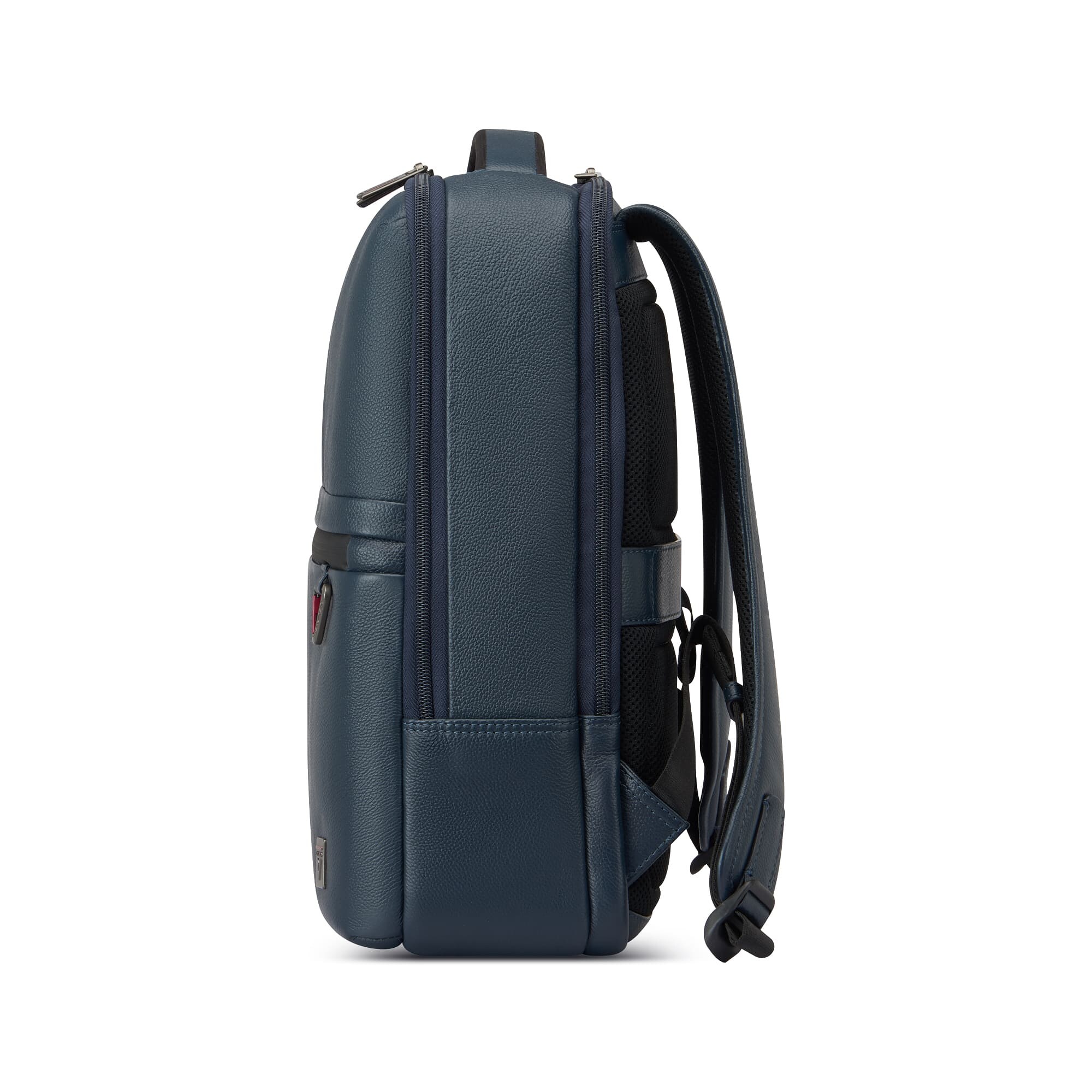 Изделие изготовлено из натуральной итальянской кожи. Оснащен двумя основными отделами на молнии, в которых есть возможность разместить ноутбук, планшет, смартфон, пишущие предметы, повербанк и необходимые Вам вещи. Передняя часть изделия имеет, дополнительный, небольшой карман с водонепроницаемой молнией и съемным брелоком. Задняя часть изделия оснащена умным рукавом для крепления на телескопическую ручку чемодана, дополнительно имеет мягкую спинку и плечевые ремни. Для удобства переноски оборудован противоскользящей ручкой.
