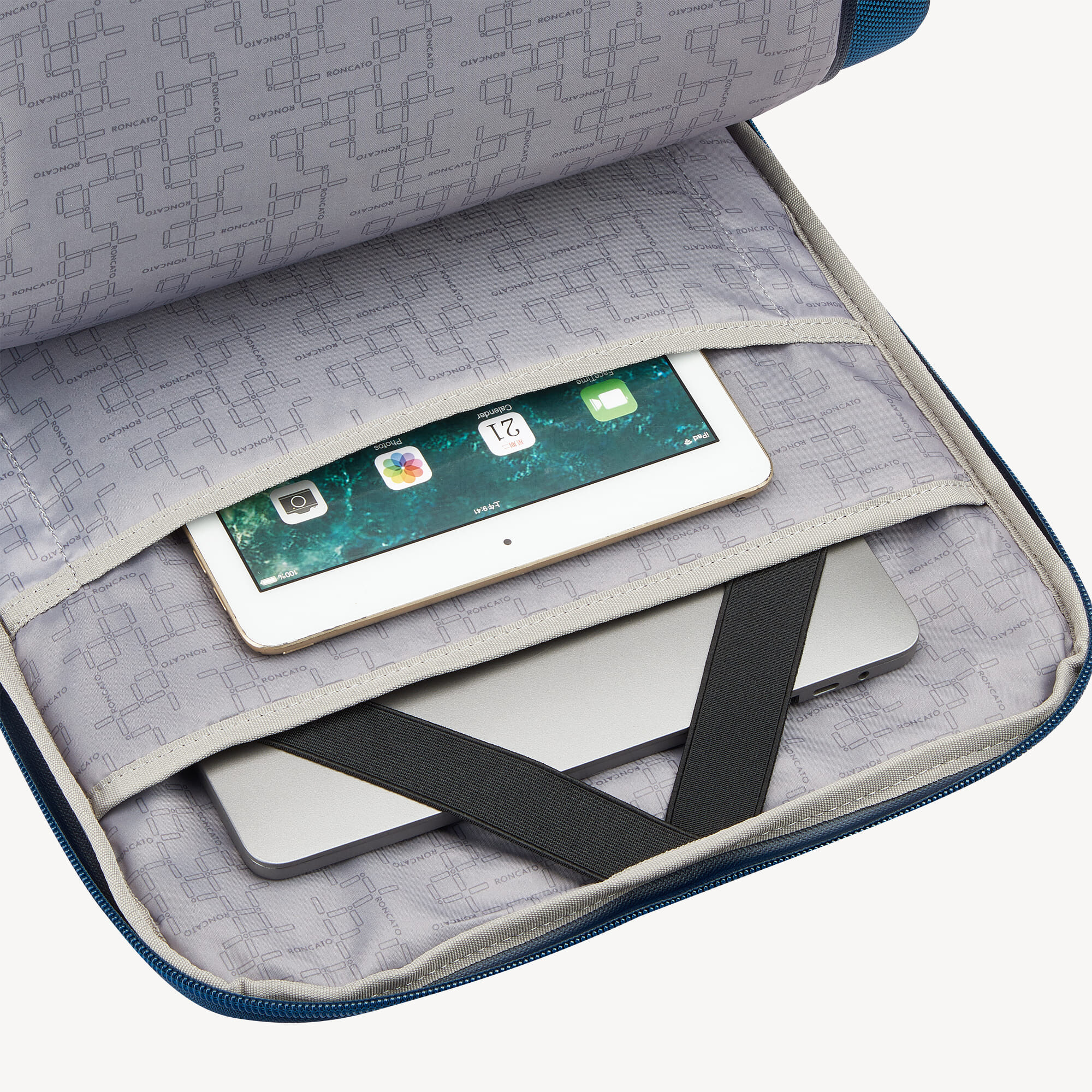 Изделие изготовлено крепкого из полиэстера плотностью 900D, с акцентом на функциональность. Изделие изготовлено крепкого из полиэстера плотностью 900D, с акцентом на функциональность. Оснащен одним основным отделом на молнии, в котором есть возможность разместить ноутбук, планшет, смартфон, пишущие предметы, повербанк и необходимые Вам вещи. Также имеет увеличивающие боковые карманы для бутылки или зонтики. Задняя часть изделия оснащена умным рукавом для крепления на телескопическую ручку чемодана, дополнительно имеет мягкую спинку и плечевые ремни. Для удобства переноски оборудован противоскользящей ручкой.
