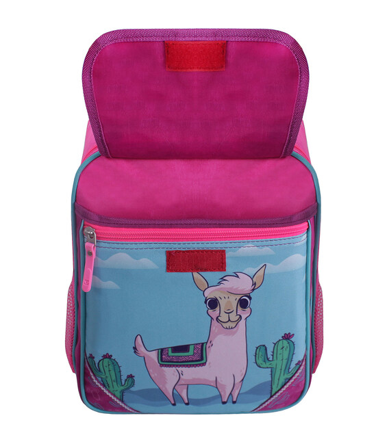 Ця модель має два відділення: найбільше підійде для підручників, зошитів, іграшок, а менше — для кольорового паперу й картону, альбому для малювання тощо. Спереду ззовні є кілька кишень для всього необхідного. Додатково є бічні відсіки з сітки для пляшки з водою чи термоса.
