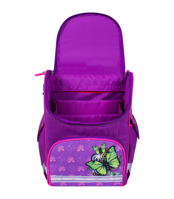 Ця модель оснащена основним великим відділенням, у якому помістяться всі необхідні канцтовари та навіть спортивна форма. Додатково всередині є відсік для зошитів, блокнота й альбому для малювання. Спереду є окрема кишеня на блискавці для пенала, а збоку розташовані кишені для пляшки з водою чи термочашки.