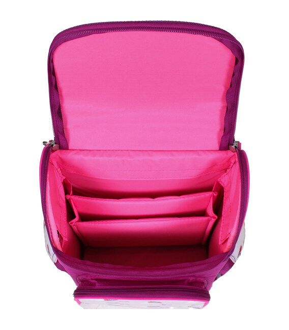 Ця модель оснащена основним великим відділенням, у якому помістяться всі необхідні канцтовари та навіть спортивна форма. Додатково всередині є відсік для зошитів, блокнота й альбому для малювання. Спереду є окрема кишеня на блискавці для пенала, а збоку розташовані кишені для пляшки з водою чи термочашки.