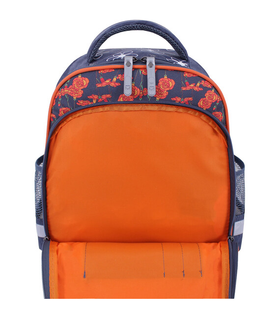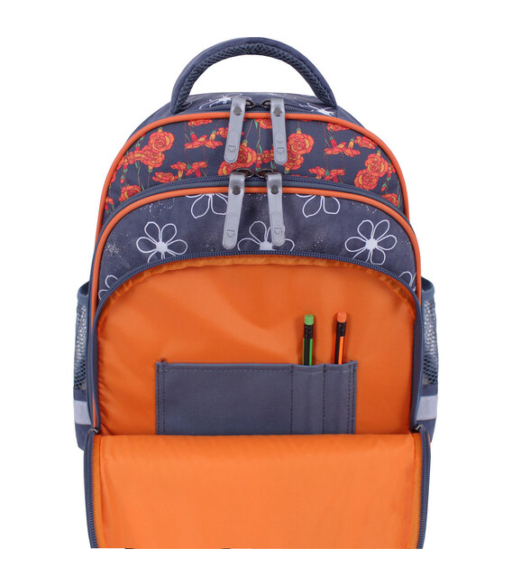 Основне й найбільше відділення підійде для підручників і спортивної форми. Друга кишеня призначена для зошитів, блокнотів чи альбому для малювання, а відсік-органайзер спереду — для дрібних канцтоварів і пеналу. Бічні сітчасті кишені вмістять пляшку з водою та парасольку.
