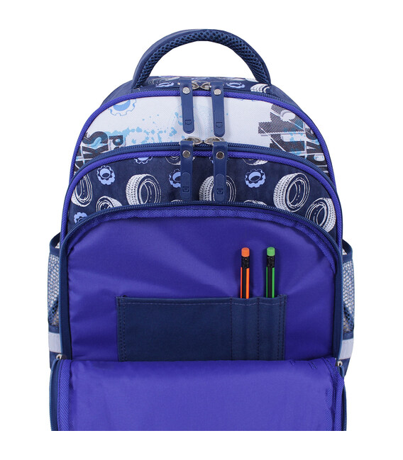 Основне й найбільше відділення підійде для підручників і спортивної форми. Друга кишеня призначена для зошитів, блокнотів чи альбому для малювання, а відсік-органайзер спереду — для дрібних канцтоварів і пеналу. Бічні сітчасті кишені вмістять пляшку з водою та парасольку.