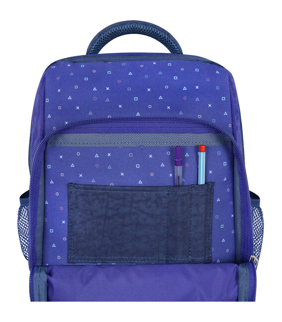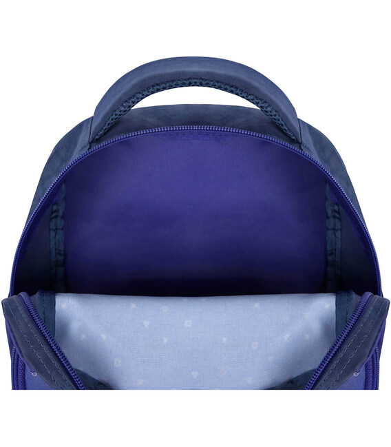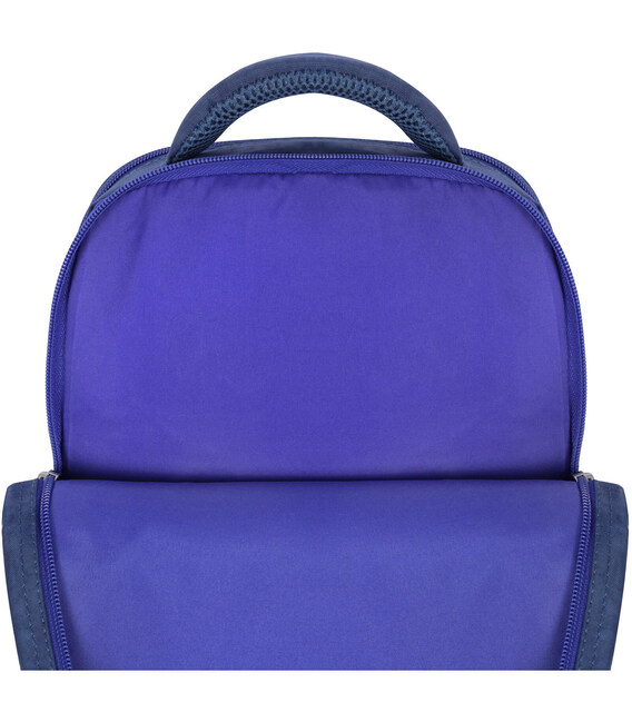 У рюкзаку — два просторі відділення на блискавці, де легко помістяться підручники, зошити або улюблені іграшки. Є також менше за розміром відділення з органайзером для канцтоварів — з ним можна обійтися без пенала. Спереду розташована зручна кишеня на блискавці для дрібниць — наприклад, телефону чи ключів. По боках — сітчасті кишені для пляшки з водою або термоса.