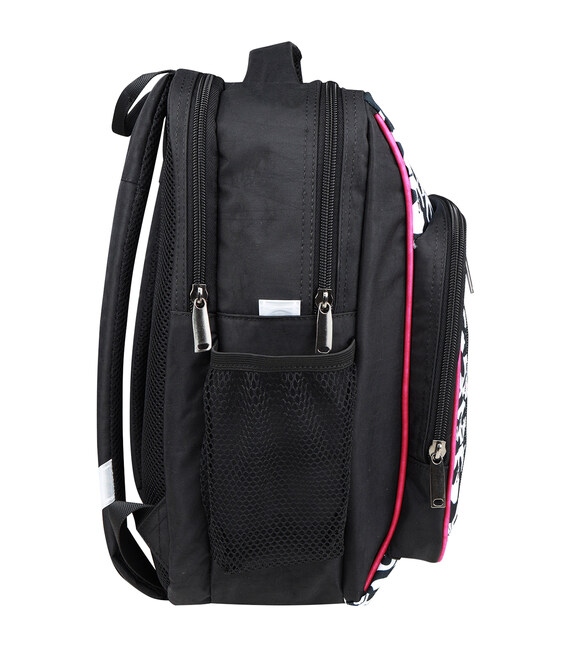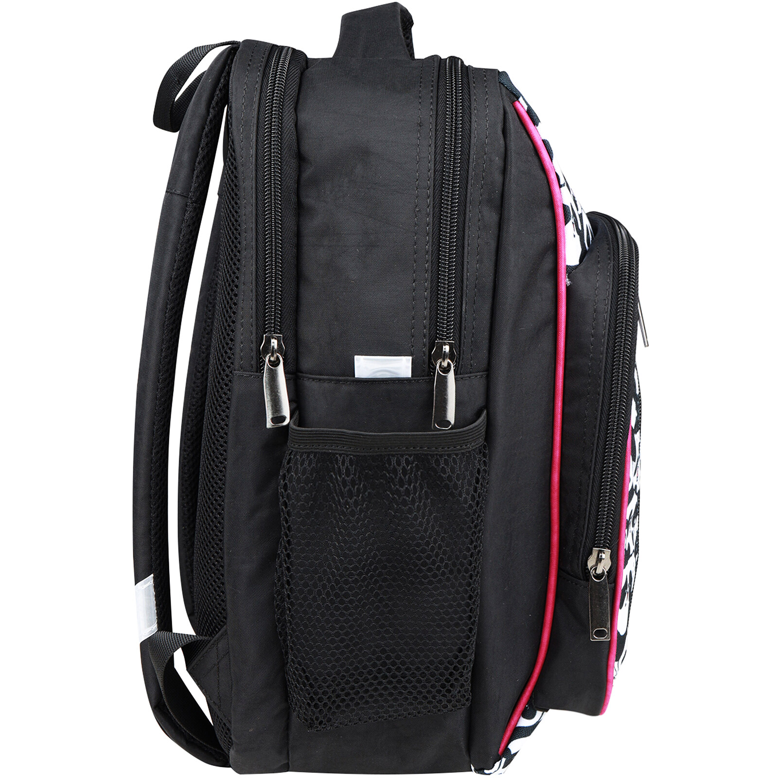 У рюкзаку — два просторі відділення на блискавці, де легко помістяться підручники, зошити або улюблені іграшки. Є також менше за розміром відділення з органайзером для канцтоварів — з ним можна обійтися без пенала. Спереду розташована зручна кишеня на блискавці для дрібниць — наприклад, телефону чи ключів. По боках — сітчасті кишені для пляшки з водою або термоса.