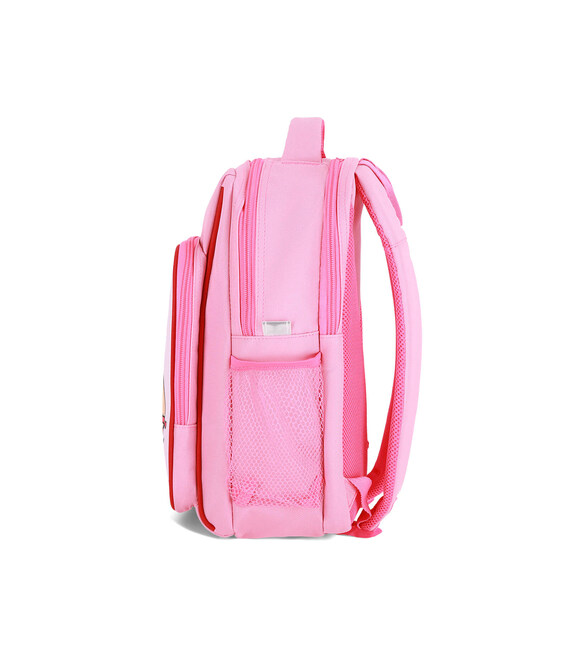 У рюкзаку — два просторі відділення на блискавці, де легко помістяться підручники, зошити або улюблені іграшки. Є також менше за розміром відділення з органайзером для канцтоварів — з ним можна обійтися без пенала. Спереду розташована зручна кишеня на блискавці для дрібниць — наприклад, телефону чи ключів. По боках — сітчасті кишені для пляшки з водою або термоса.