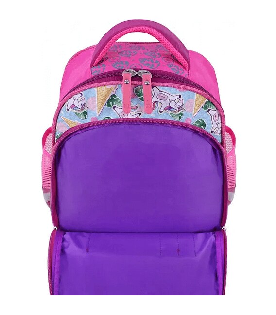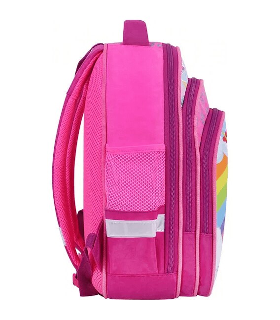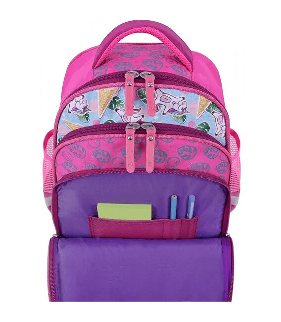 Основне й найбільше відділення підійде для підручників і спортивної форми. Друга кишеня призначена для зошитів, блокнотів чи альбому для малювання, а відсік-органайзер спереду — для дрібних канцтоварів і пеналу. Бічні сітчасті кишені вмістять пляшку з водою та парасольку.