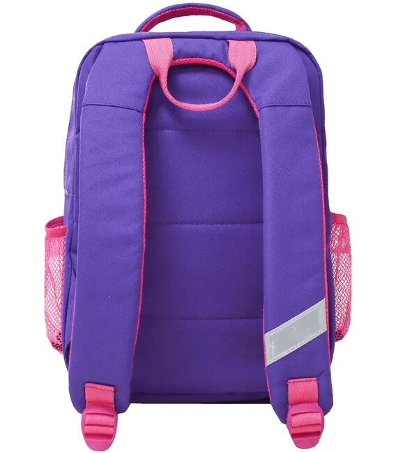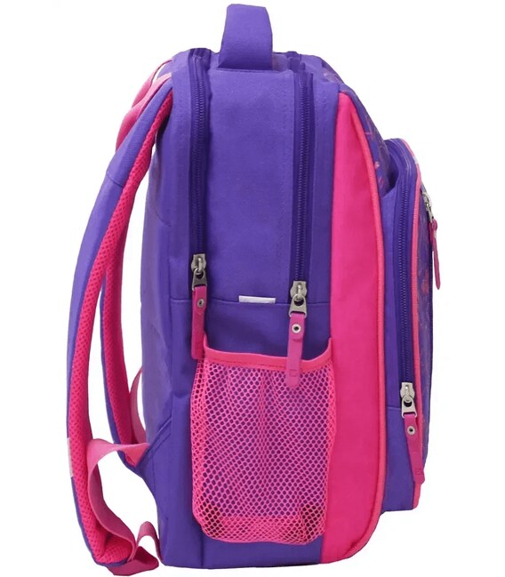 У рюкзаку — два просторі відділення на блискавці, де легко помістяться підручники, зошити або улюблені іграшки. Є також менше за розміром відділення з органайзером для канцтоварів — з ним можна обійтися без пенала. Спереду розташована зручна кишеня на блискавці для дрібниць — наприклад, телефону чи ключів. По боках — сітчасті кишені для пляшки з водою або термоса.
