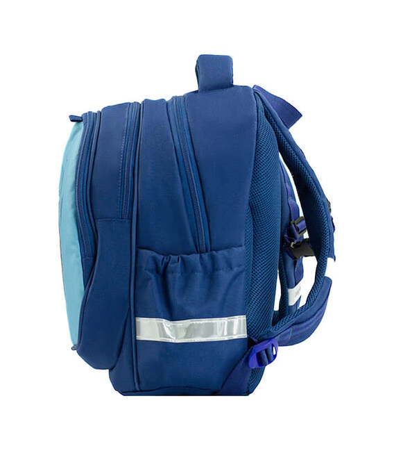 Рюкзак має три великі відсіки, куди помістяться необхідні речі. Найбільше відділення підходить для підручників і навіть спортивної форми, середнє — для зошитів і блокнота, а переднє — для дрібної канцелярії. Ззовні збоку є додаткові кишені для пляшок із водою. Ортопедична спинка знижує навантаження на хребет, забезпечуючи правильну поставу в дітей, а лямки рюкзака регулюються та мають вентиляційні вставки для запобігання потовиділення та більш комфортного використання.