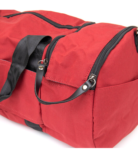 Текстильная дорожная сумка красного цвета. Сумка подойдет как для занятий спортом, так и в качестве дорожной сумки. Изделие очень практичное и не имеет тяжелого веса. Сумка имеет компактные размеры и станет хорошим вариантом для командировки. В сумку можно удобно поместить пару кроссовок в соответствующее отделение. В сумке также есть петелька для носки каремата или коврика (чтобы его зафиксировать). Сумка из текстиля - идеальный бюджетный вариант.