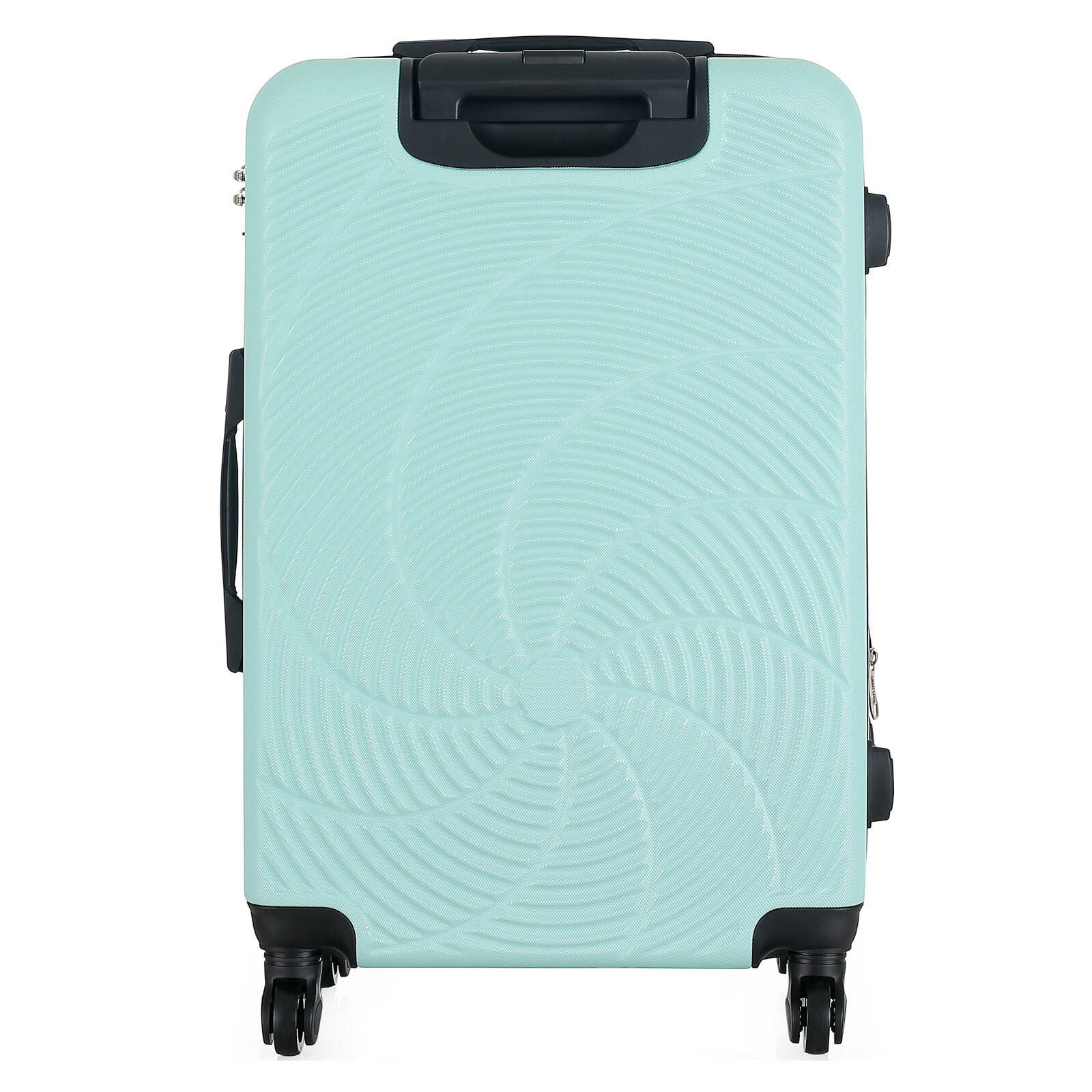 Корпус имеет рифленое покрытие, которое скрывает мелкие царапины. «Утопленный» кодовый замок призван защитить содержимое вашего чемодана, а также не выступает над корпусом, поэтому его невозможно случайно повредить при транспортировке чемодана. Чемодан оснащен четырьмя полноповоротными колесами на 360°, обеспечивающими маневренность и устойчивость, а также телескопической ручкой, которая фиксируется в трех положениях. Внутреннее пространство разделено текстильной перегородкой с карманом на молнии, есть эластичные компрессионные ремни для фиксации одежды. Для удобства транспортировки предусмотрены верхняя ручка с мягкой гелевой подкладкой и боковая ручка.