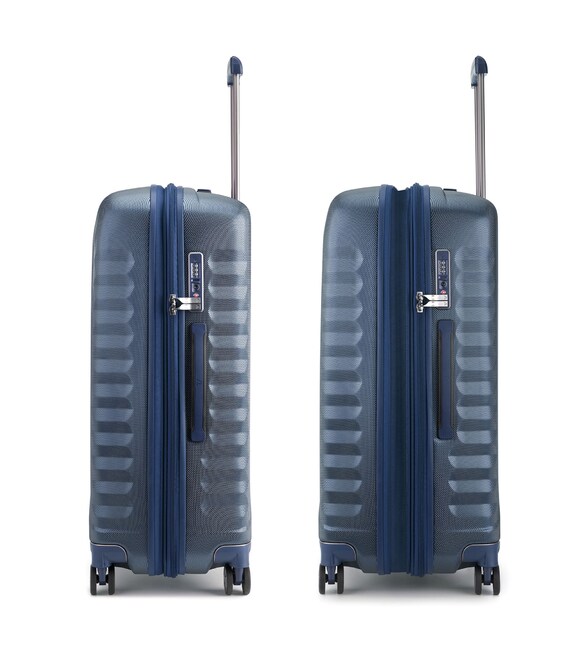 Чемодан оснащен двойными бесшумными колесами, вращающимися на 360°, которые придают изделию маневренность, встроенным кодовым замком с системой TSA, двойной молниезащитной защитой High Tech Security Zip, стальной, упрочненной телескопической системой, прорезиненными подъемными ручками для удобства. Также, данная коллекция с расширением, дающая +25% емкости чемоданам.
