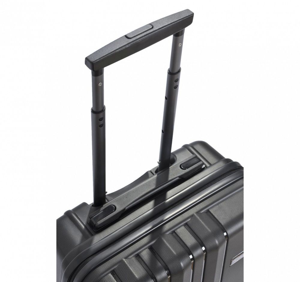 Сверхлегкий и прочный чемодан на 8-ми (4х2) колесах TM Columbus. Оснащен кодовым замком системы TSA, телескопической алюминиевой ручкой с фиксаторами. Внутри обшит тканью, имеет 2 отделения, разделяются диафрагмой и карман на молнии для мелких вещей; эластичные пояса для фиксации вещей.