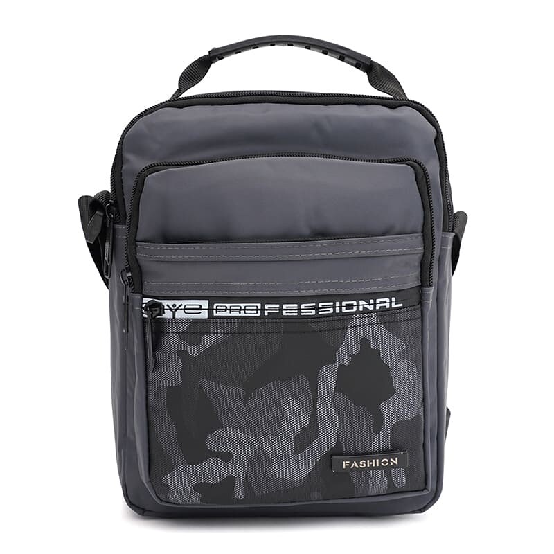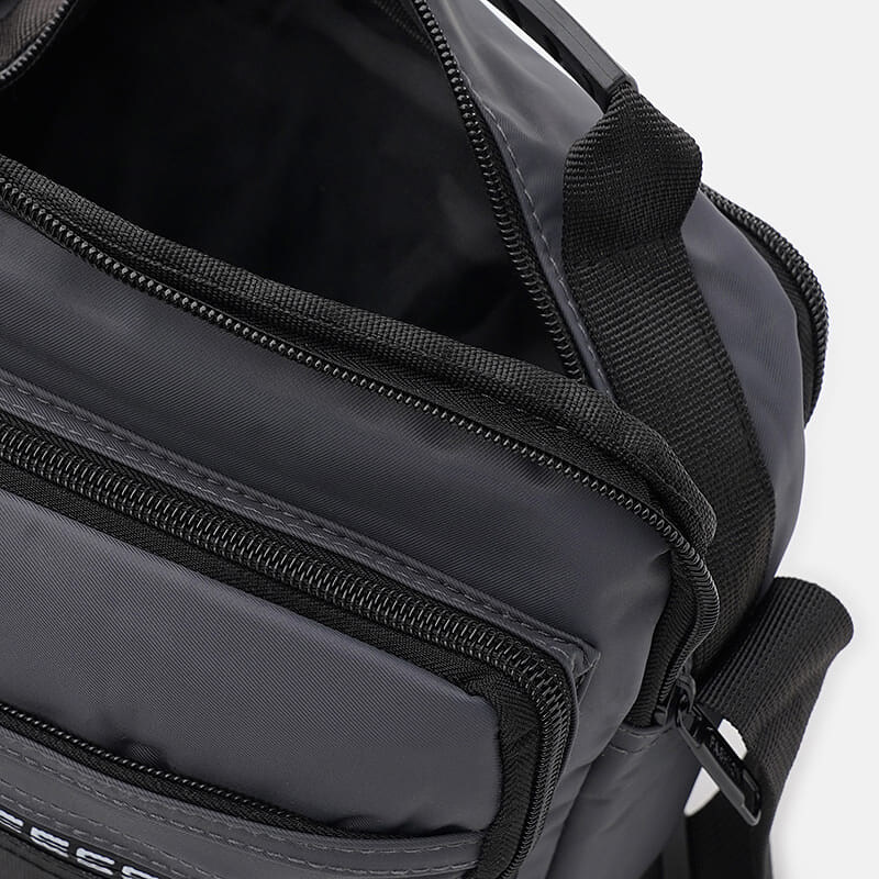 Мужская сумка выполнена из прочного текстиля. Имеет 2 отделения на молниях. Внутри сумки имеется 1 карман на молнии и 1 карман для телефона или других мелочей. С лицевой стороны- 3 кармана на молнии, с тыльной-1 карман на молнии. Подкладка текстиль. Несъемный текстильный ремень регулируется по длине.