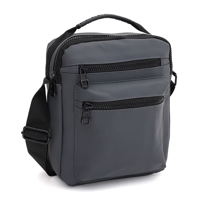 Мужская сумка выполнена из прочного качественного материала. Имеет 1 отделение на молнии, внутри карманы для телефона и мелочей. Снаружи 3 кармана на молнии. Подкладка текстиль. Плечевой ремень регулируется по длине.